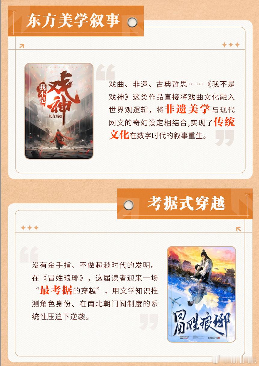 2025年度网文关键词出炉【2025网文十大热词发布:这届读者都爱看些啥?一代人有一代人的书单】历经30天的激烈角逐,番茄小说2025“年度巅峰榜”即将新鲜出炉,而今日中国新闻周刊也因此同步发布了十大网文领域关键词:“东方美学叙事,考据式穿越,无CP大女主,人性博弈,发疯文学,名场面,秦海璐书单,修仙2.0,短剧改编,人均小说家”。戏曲、非遗、古典哲思……传统文化通过创新的叙事手法,在网文世界里完成惊艳重生——《我不是戏神》这类作品直接将戏曲文融入世界观逻辑,成功地将非遗美学与现代网文的奇幻设定相结合,实现了传统文化在数字时代的叙事重生。而2025年番茄小说的头部历史作品《冒姓琅琊》则堪称“考据式穿越”的典范。这届穿越文主角不再做肥皂、炼细盐、造火药,而要用《尚书》《论语》《周礼》中的历史常识,在真实且充满限制的古代社会中挣扎求生。一部优秀的穿越文,考据到可以成为传播历史知识的新载体。即将公布最终结果的2025番茄巅峰榜上的作品,正是此类内容的集中体现。关注榜单,或许能更快地与你下一本心头好相遇。