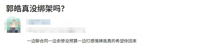 网友吐槽郭皓“感情绑架”369:一边卖惨没预算,一边打感情牌真希望你回来此前LP