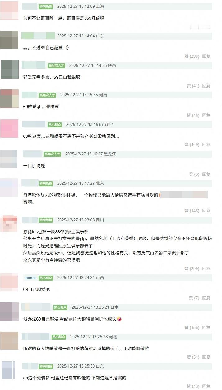网友吐槽郭皓“感情绑架”369:一边卖惨没预算,一边打感情牌真希望你回来此前LPL官方放出S15赛季的宣传片,其中在TES片段中经理郭皓谈及和169续约的问题,这一画面遭到了很多网友的质疑。郭皓:从说要不要尝试归队到69说那签吧,就这个中间的过程,可能一天左右。那最终我们在聊合同那件事情的时候,10秒,就我们当时几个人一起去吃火锅,然后在门口的时候说,那我反正我就这个预算,我当然我是希望你回来的,但是也不希望以这个来绑架你,大概闭眼想了几秒钟吧,然后就说,那待会儿就回基地,直接签字吧。teslpl超话助威团竞技游戏