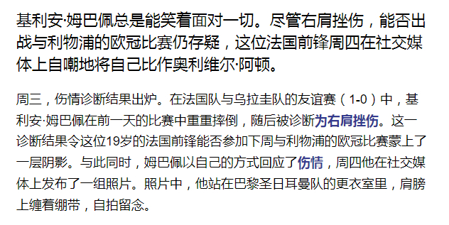 姆巴佩 IG STORY更新:“一本足球百科全书离开了我们。谢谢你所做的一切,