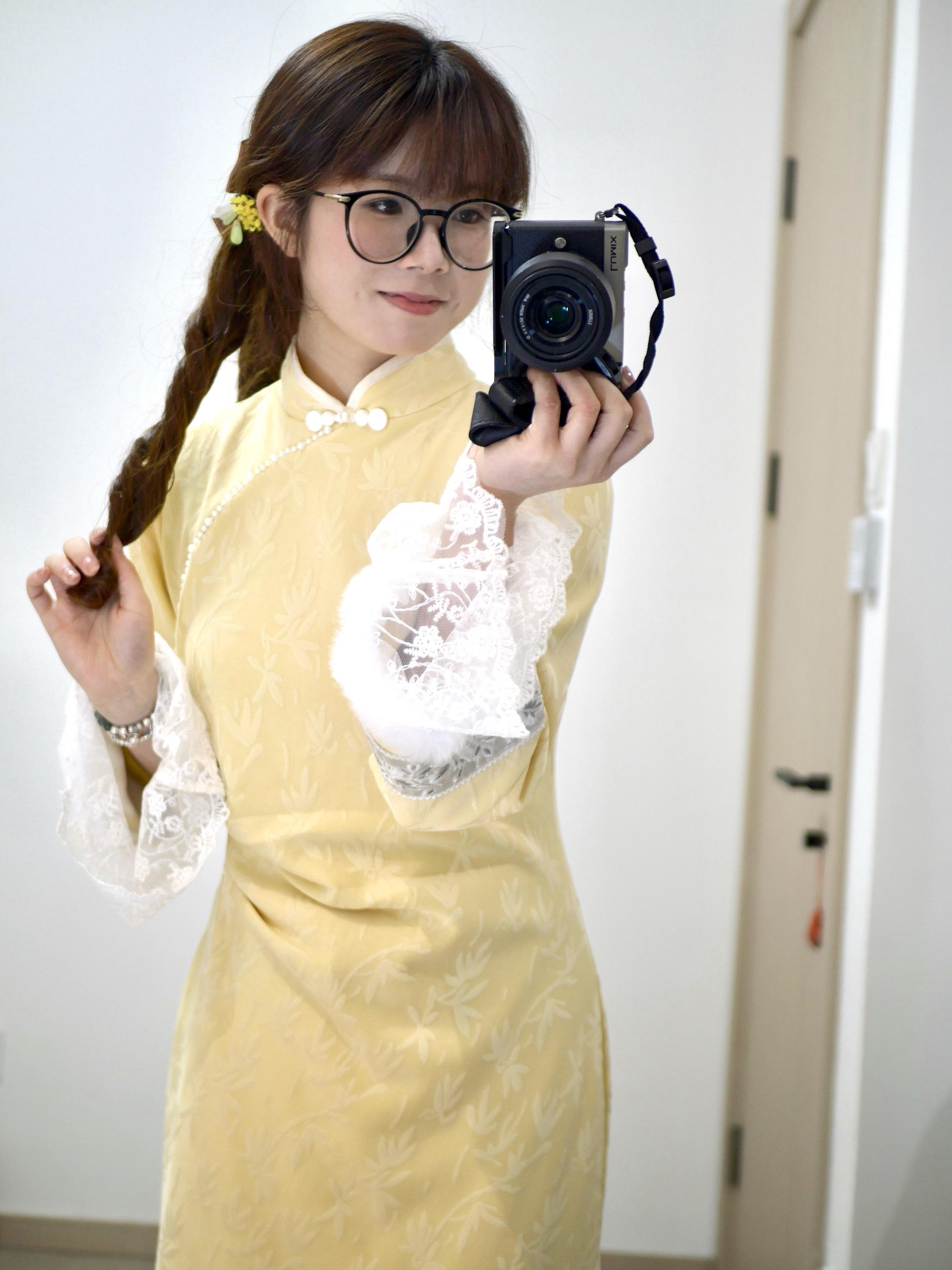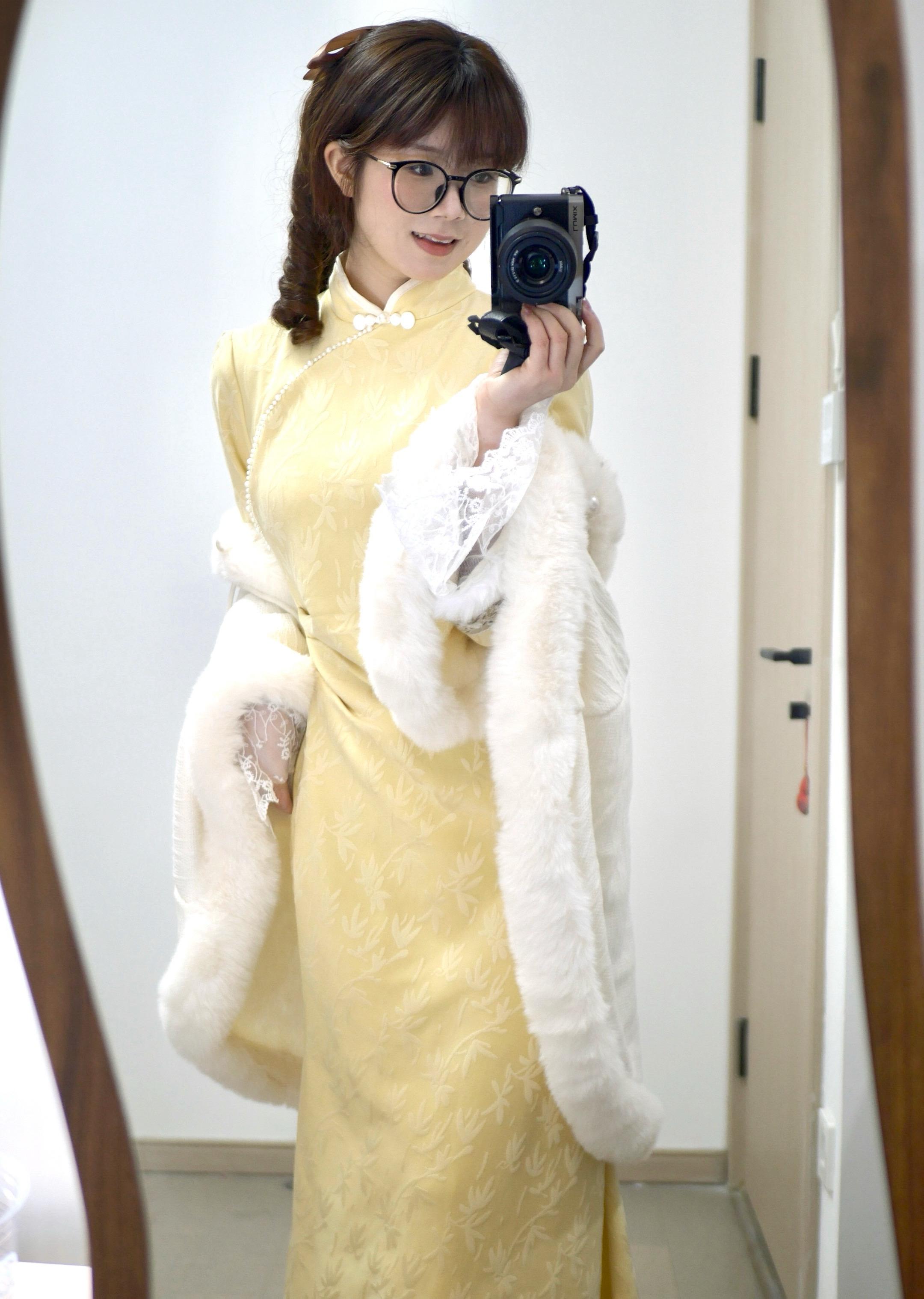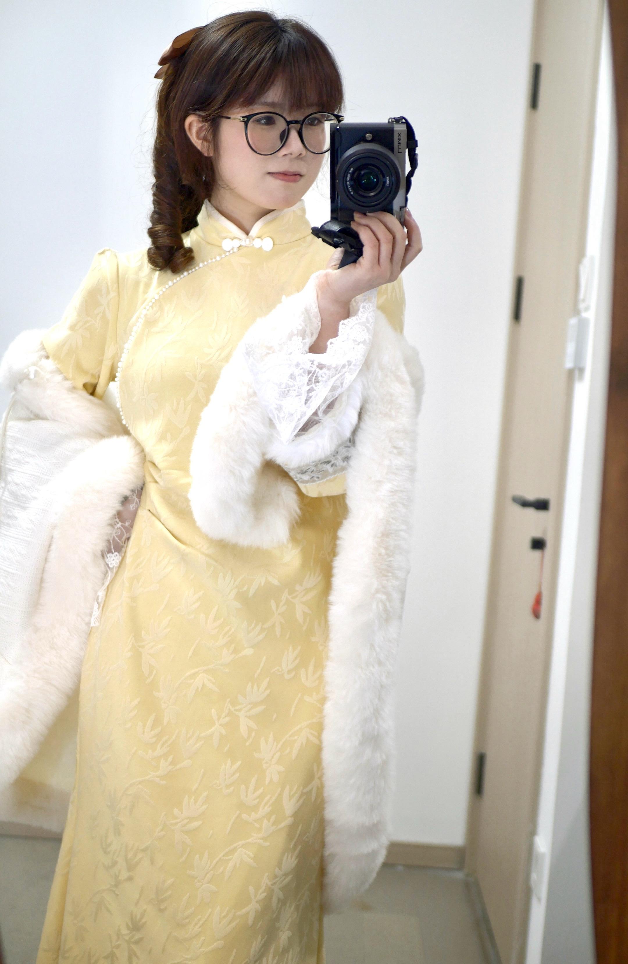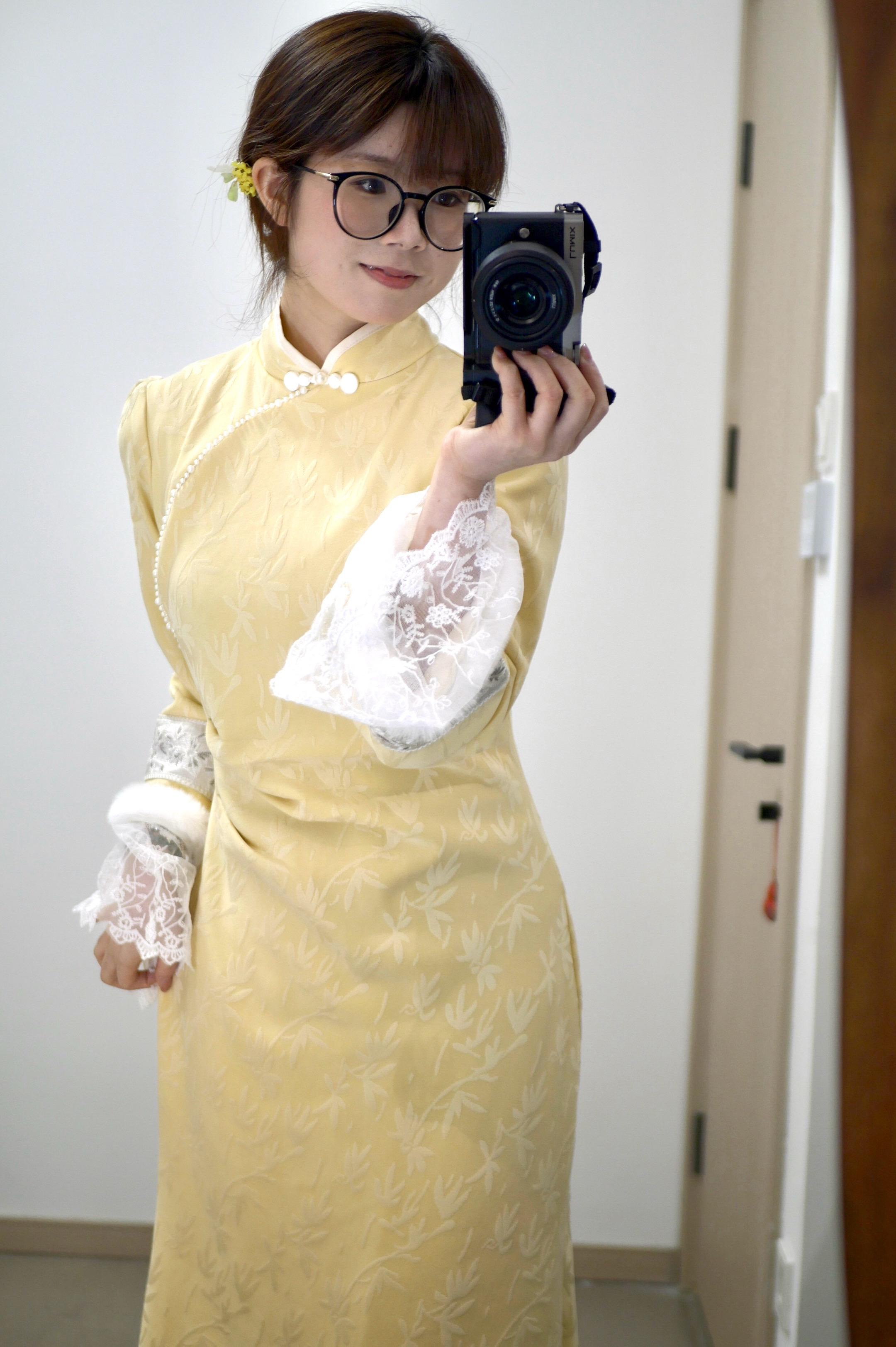 完全大小姐来的。虽然前天发过了手机版的,还想再发一遍相机拍的嘻嘻 黄色旗袍旗袍秋冬旗袍的中式美学