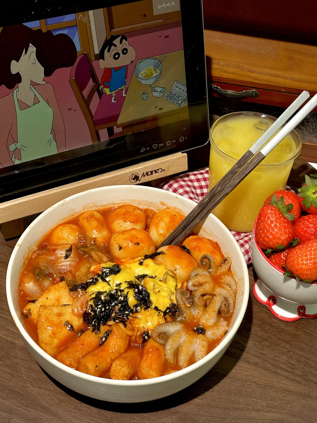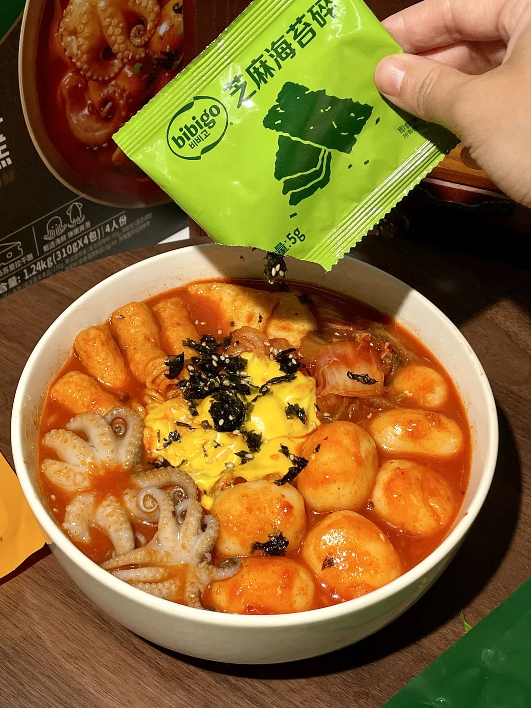 家里囤了山姆刚上新的必品阁韩式海鲜芝心年糕,做一人食的韩式部队火锅不要太合适了!!