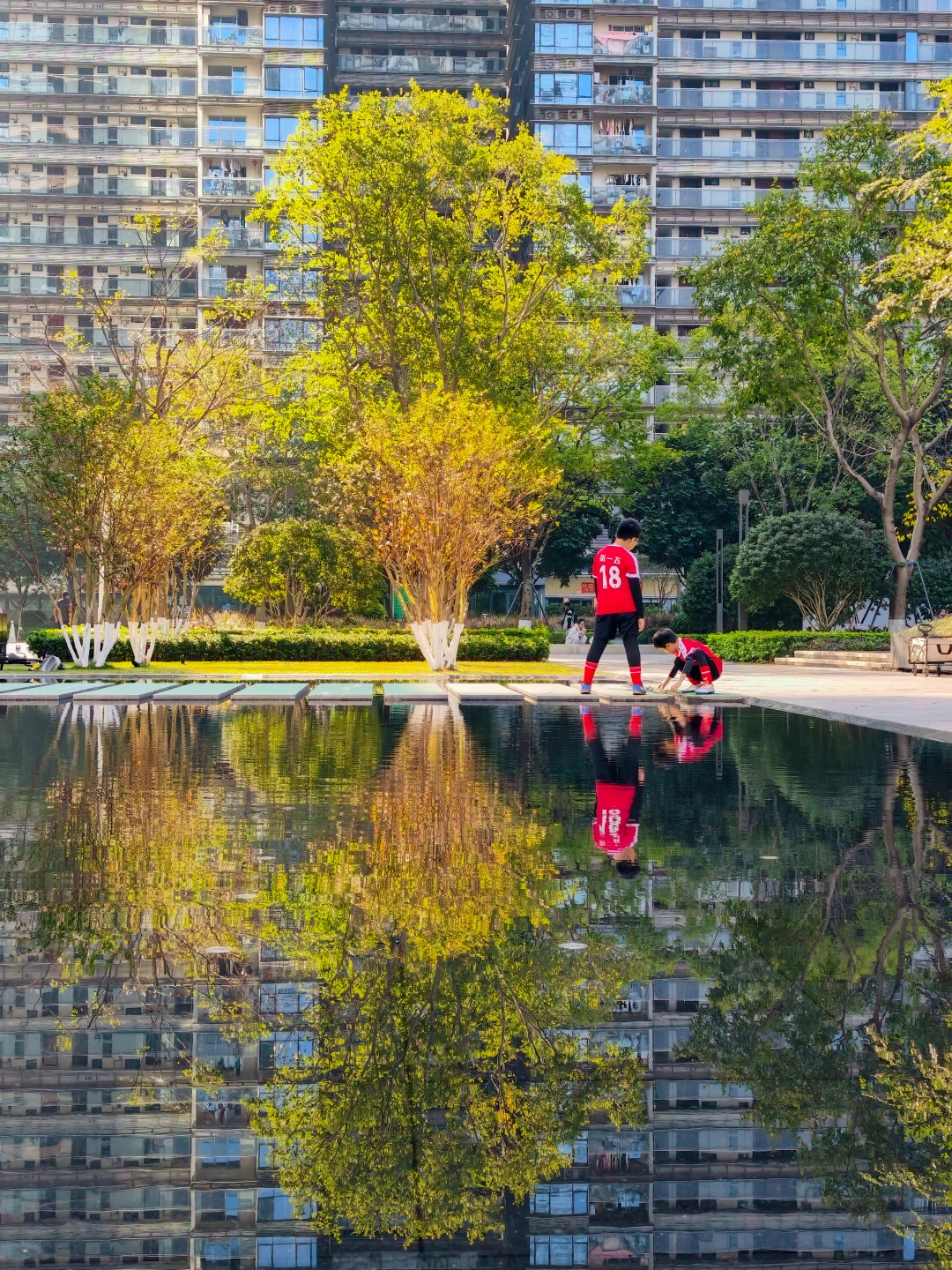 高楼大厦褪去了日间的喧嚣,只剩下清晰的轮廓,被一一临摹在水中——一座倒立静谧的,只属于早行人的海市蜃楼。此刻,城市收起了它钢铁森林的冷峻,展现出了宁静与温柔的一面🍃