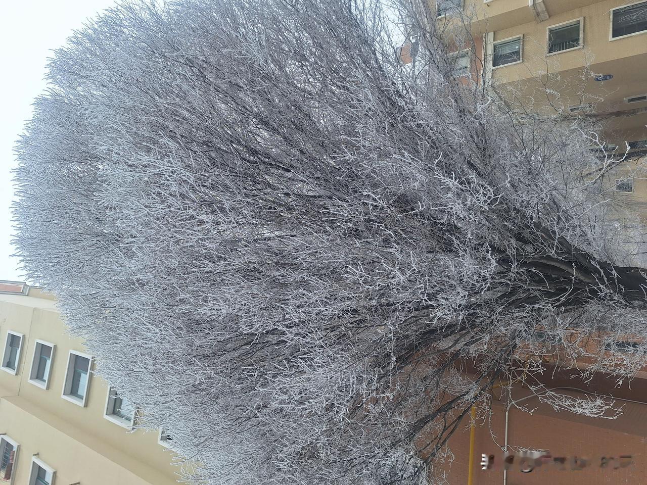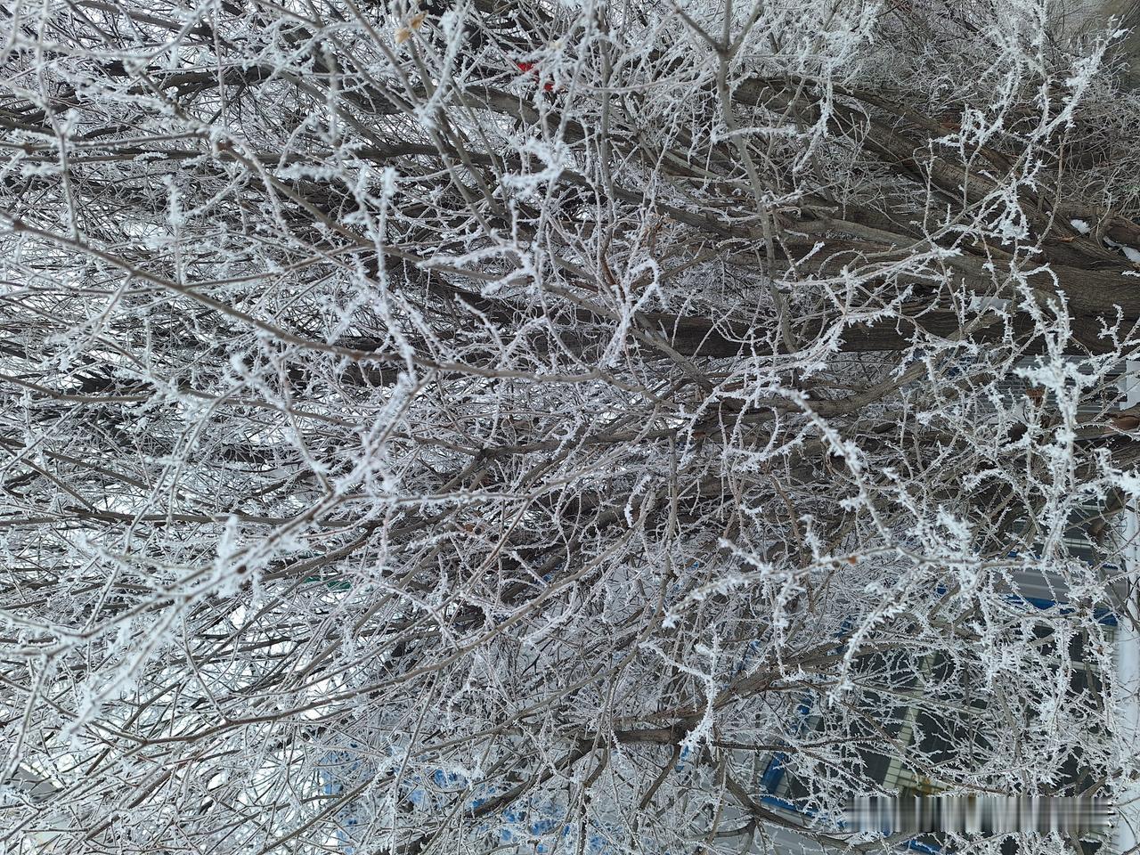 玉树琼花,雾凇看着好美。这不是下雪,而是水汽在花草树木上凝结所致。
