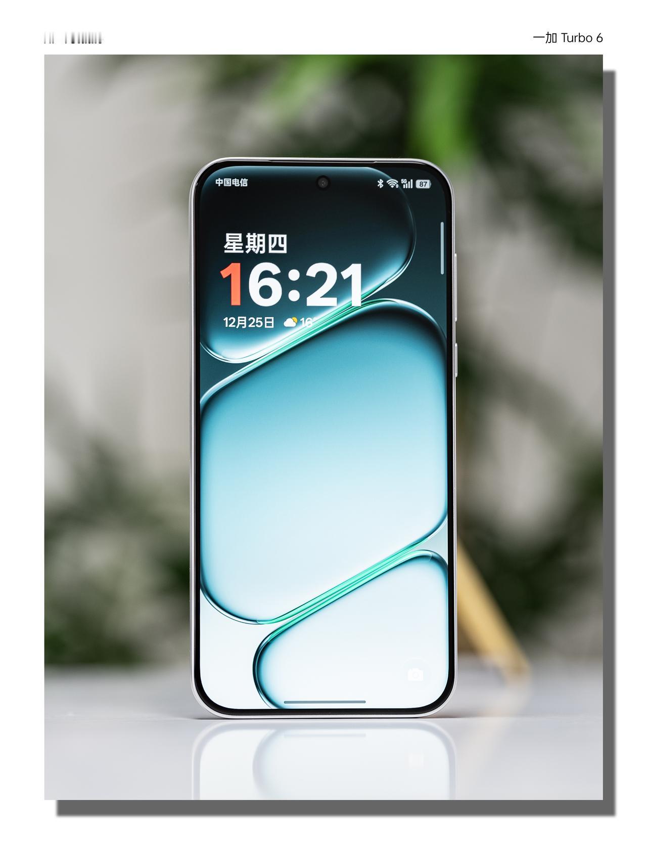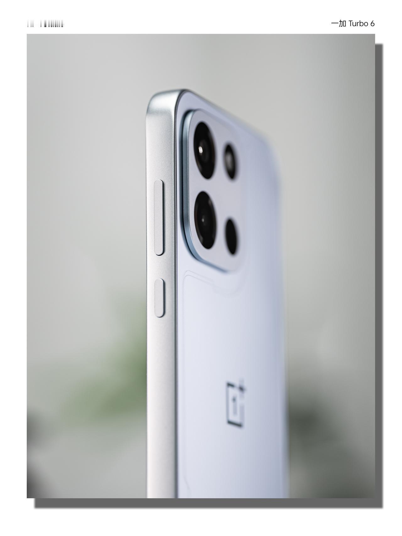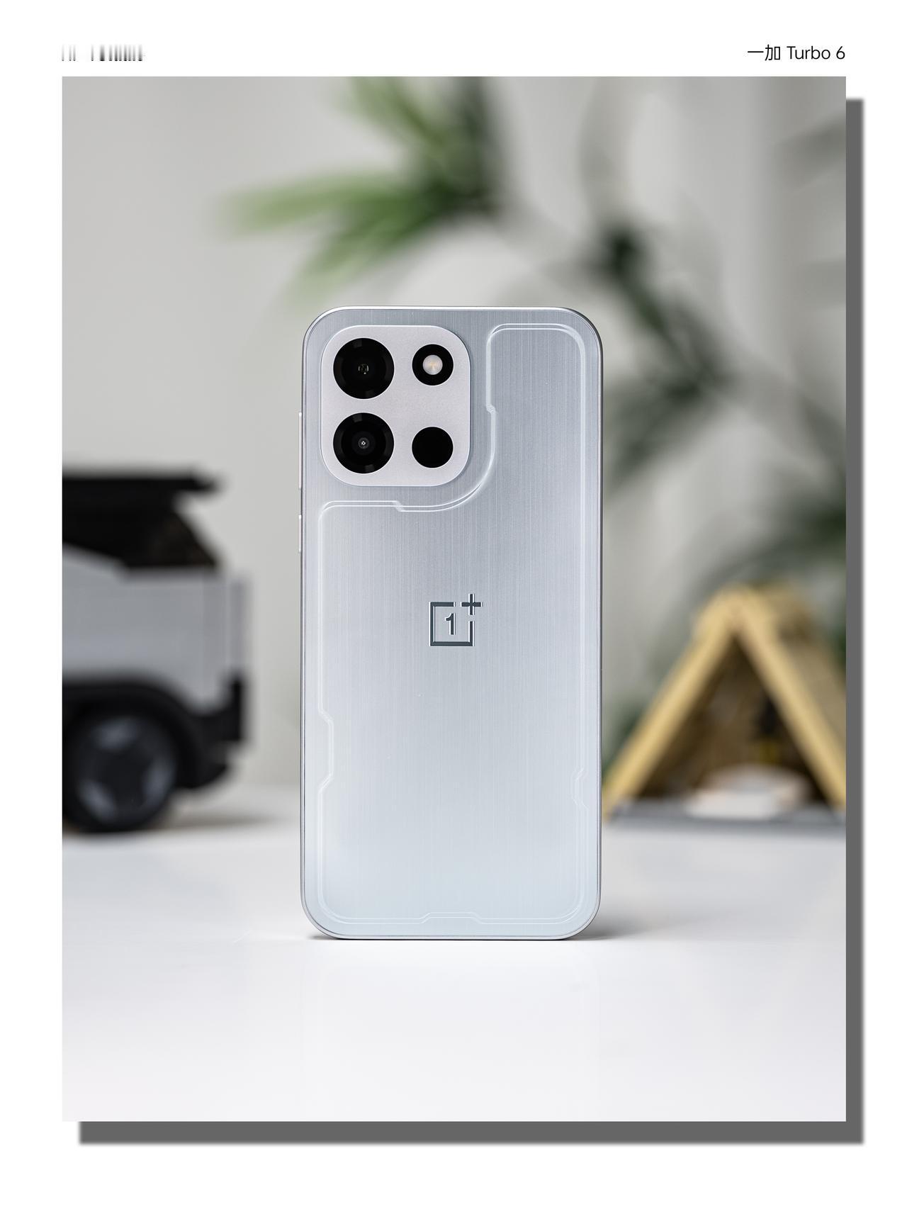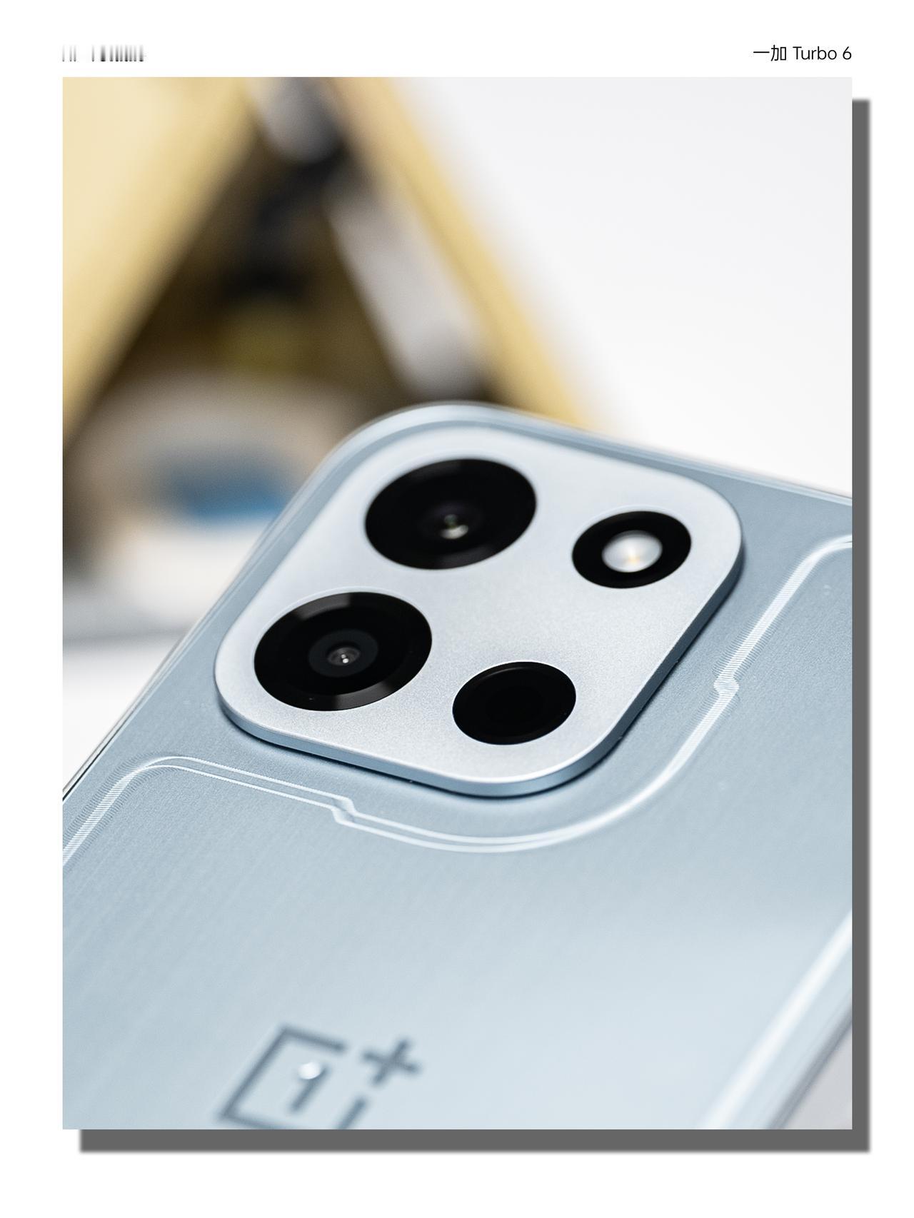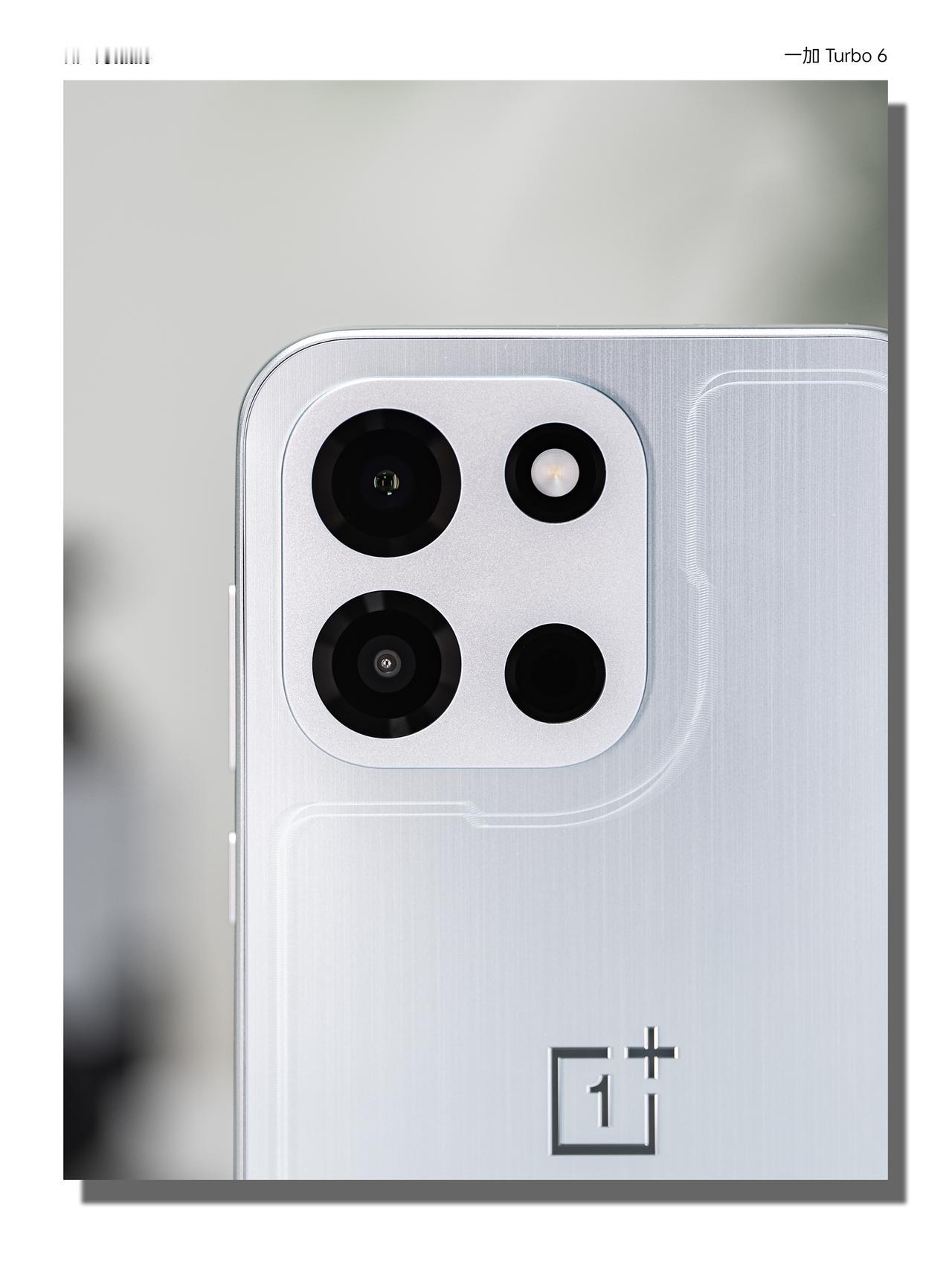 Turbo 6 「追光银」背板用了的3D全息雕刻工艺,在哑光银的底子上“画”出一道追光轨迹,光线扫过时会绕着背板流动。机身用的是微米级工艺+低雾高透抗指纹材质,耐摔,而且上手之后不容易沾指纹。镜头模组还是经典的「金属魔方」设计,配合上15.5mm的大R角设计,手感确实不错。