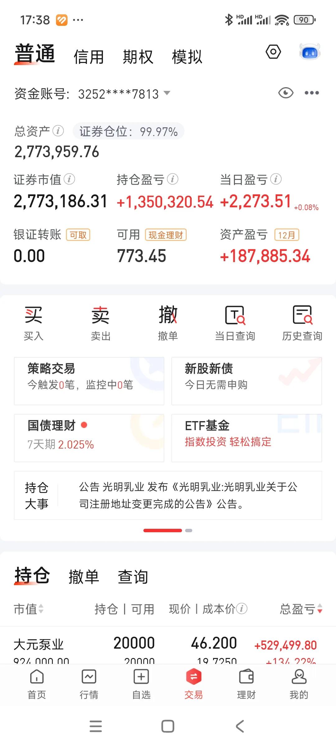 今天大肉,账户回到270,大元涨停但是没有带动板块。