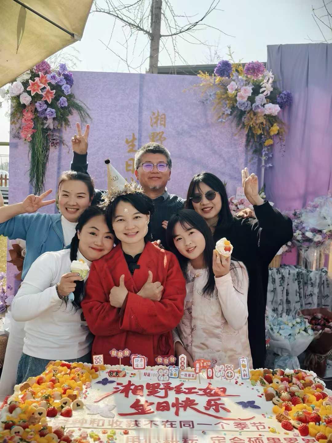 头一次过这么热闹隆重的生日。以前在台里上班的时候,生日这天都在忙着筹备年终的节目。后来自己做影视工作室,这时候也在忙着赶各个企业或者节目组的项目。生日最多和家人匆匆吃个饭,吃个生日蛋糕。后来成为了“湘野红姐”,我的生日和“湘野红姐品牌”又赶上了同一天,重心又都在品牌日上了……四十不惑之年,谢谢我的妈妈花了七天七夜生下了我,还有我的爸爸辛苦打拼供我上大学走出大山,让我能追逐更远的梦想。谢谢我的其他家人,尤其杰哥的支持,谢谢湘野红姐团队每个伙伴的协力,谢谢蛙姐、马老师和蛙姐团队全场助力,谢谢衣哥、田野鹏火、毅往吴前、爱辣兰湘子、丁敬华、湖南两公婆、会做菜的阿正、九哥、来哥来了、李梁小卖部,蛙姐小表妹、湘遇老碗柜剑哥等账号主理人及团队的亲临,谢谢直播间所有朋友的祝福和守候,谢谢所有亲人和朋友给了我一场难忘的生日会。祝愿大家身体身体健健康康,生活事业蒸蒸日上播种和收获不在同一个季节,用心耕耘,定会硕果累累一年一生日生活小记