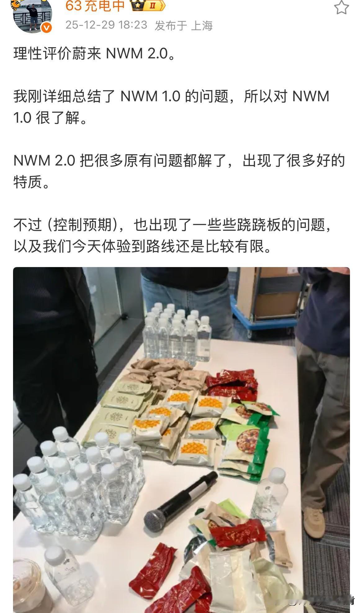 蔚来的NWM2.0快要“上菜”了。 今天好几个博主已经先行体验上了,好像评价还