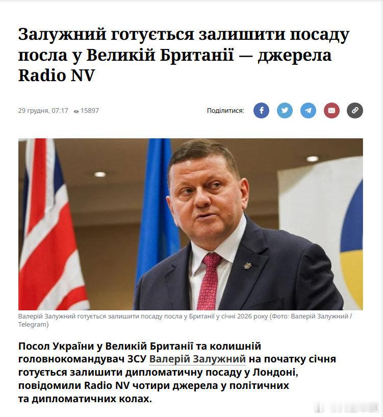 据乌克兰国家广播电台报道,前乌军总司令瓦列里·扎卢日尼据称准备于1月初卸任乌克兰驻英国大使一职。民调显示,他如果竞选将领先于泽连斯基。 普京承认自己正在恋爱中关注俄乌局势最新进展俄乌冲突