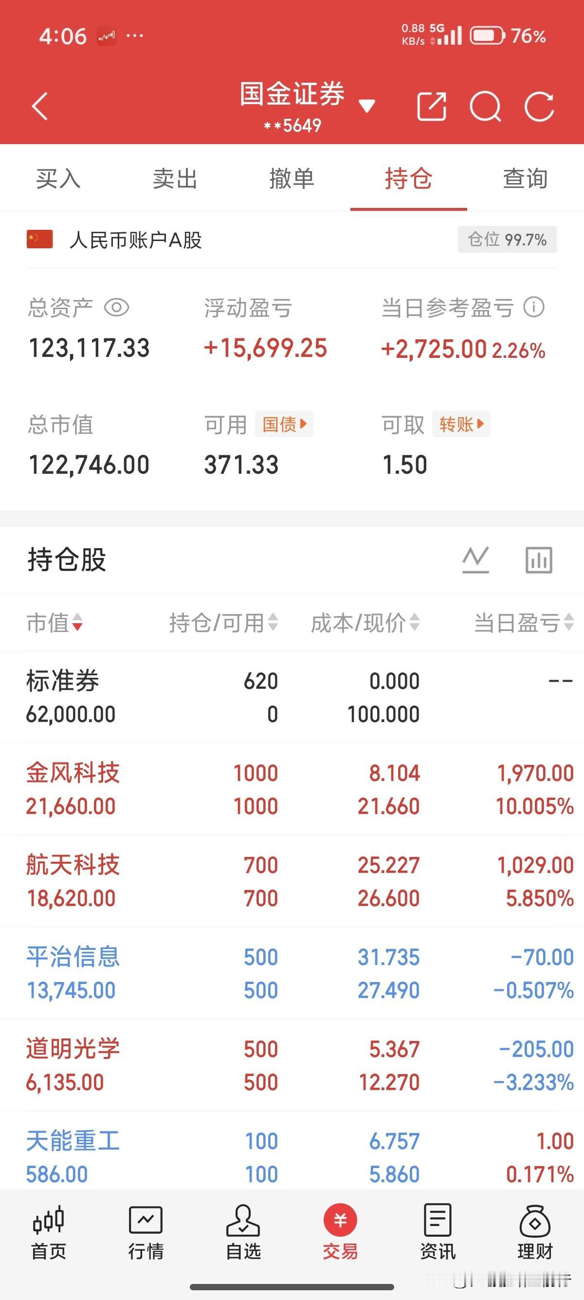 十万想变百万。周五买的科技涨了5个点,挺美。金风板了。还是半仓。卖出的英维t没涨