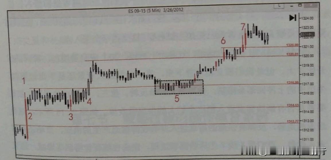 十万想变百万。周五买的科技涨了5个点,挺美。金风板了。还是半仓。卖出的英维t没涨,时刻关注着,准备杀回去。 每日一学:跳离震荡区joc的案例 如图所示,这个JOC发生在牛市中回调形成的震荡区中。 1号K线:K线1强劲需求柱突破以前的供应区开始回调,这种情形表明了市场参与者的态度,这是JOC,我们等待缩量回调后进场。后面的回调在2~3之间形成小幅交易区间(震荡区)。从市场行为讲,K线1的强劲需 求柱后的小幅震荡是吸收,为下一波上涨积蓄力量。小区间内部我们不参与交易,容易造成亏损。任何震荡区形成之后,我们要等待需求或者供应扩大的情况出现,也就是等待SOS或SOW出现。 3号K线:这是需求强劲的表示,它的行为属于弹簧效应,特别是前一根的价格波动和下跌幅度缩小,说明市场的供应已经稀少。在这种情况下,需求还保持力量,并形成弹簧效应。K线3之后需求持续控制市场,这一点 我们可以从它后面的跟随看出。 4号K线:这是JOC,也是SOS,强劲的垂直需求柱把价格带到了区间之上,原来的供应区成为需求区。我们的计划是等价格回到突破点进场,但 是回测过程不能有大量供应入场,如果是那样,我们在场外观望。 5号区间:首先看这个价格回调的过程有没有供应出现,因为全部是小幅K线,表明下跌失去了动力。需求控制的背景下,供应的枯竭给我们提供 了好的进场时机。这是专业操盘手的进场点,我们也应该随着他们买入。 6号K线:与4号的作用一样,强力需求柱吸收阻力上的供应。回调过程同样是短K线,告诉我们没有供应进入,这又是一个买入点。 7号K线:让很多人迷惑,这是个上影线,加上成交量增加,说明供应开始扩大,但是我们要立刻冷静下来,第一,目前大背景还是牛市。第二, 牛市中的上冲回落是陷阱,会误导人们做反转。第三,因为这些原因,我们要看是否有新的需求进入把这个扩大的供应吸收掉。 图三,这是后面的走势,反弹有强劲的需求进入并吸收掉前面产生的供应,市场还是需求占优势。我们看K线7之后的回调过程,供应在随着价格回落递减,这又是个好的买入点。 JOC所描述的是价格强势突破供应区的行为,JOC的出现等于给专业交 易者(聪明钱)提供了进场平台,他们需要等待缩量回调进场。震荡区的顶部就像一个充满供应的小溪,价格要想越过这个供应区,必须有强劲的需求(成交量和长阳)把小溪中的供应吸收掉。如果在回测过程中出现放量阴线说明供应又回到市场,这会导致价格继续震荡或者下跌,我们应该放弃入场的计划。