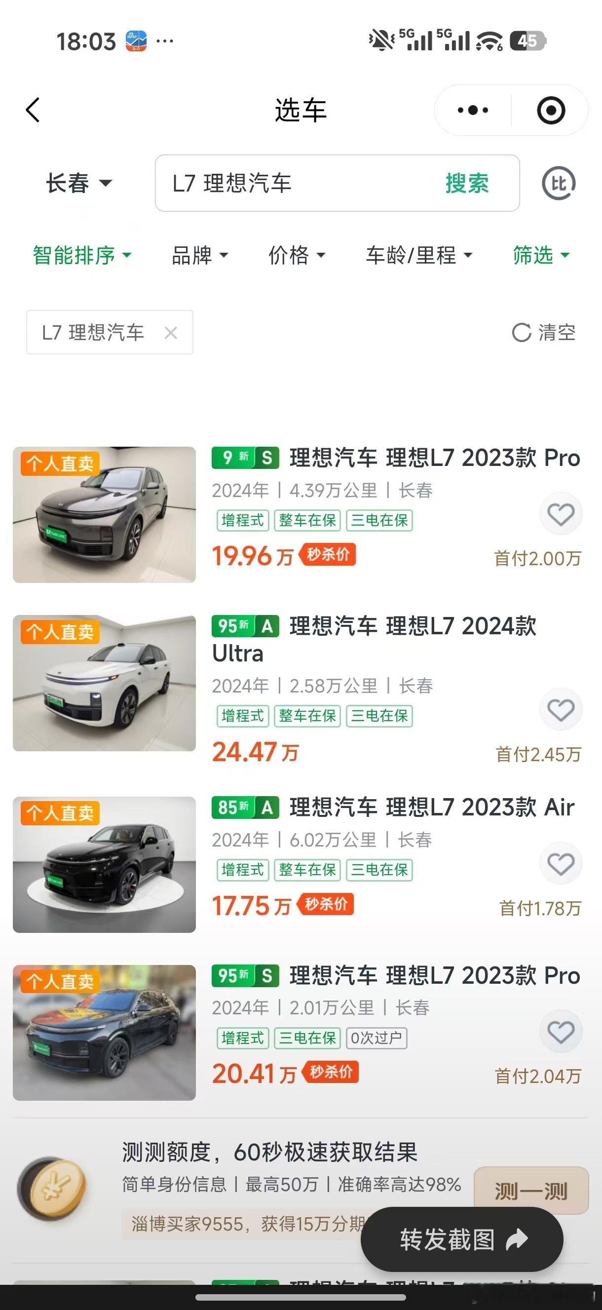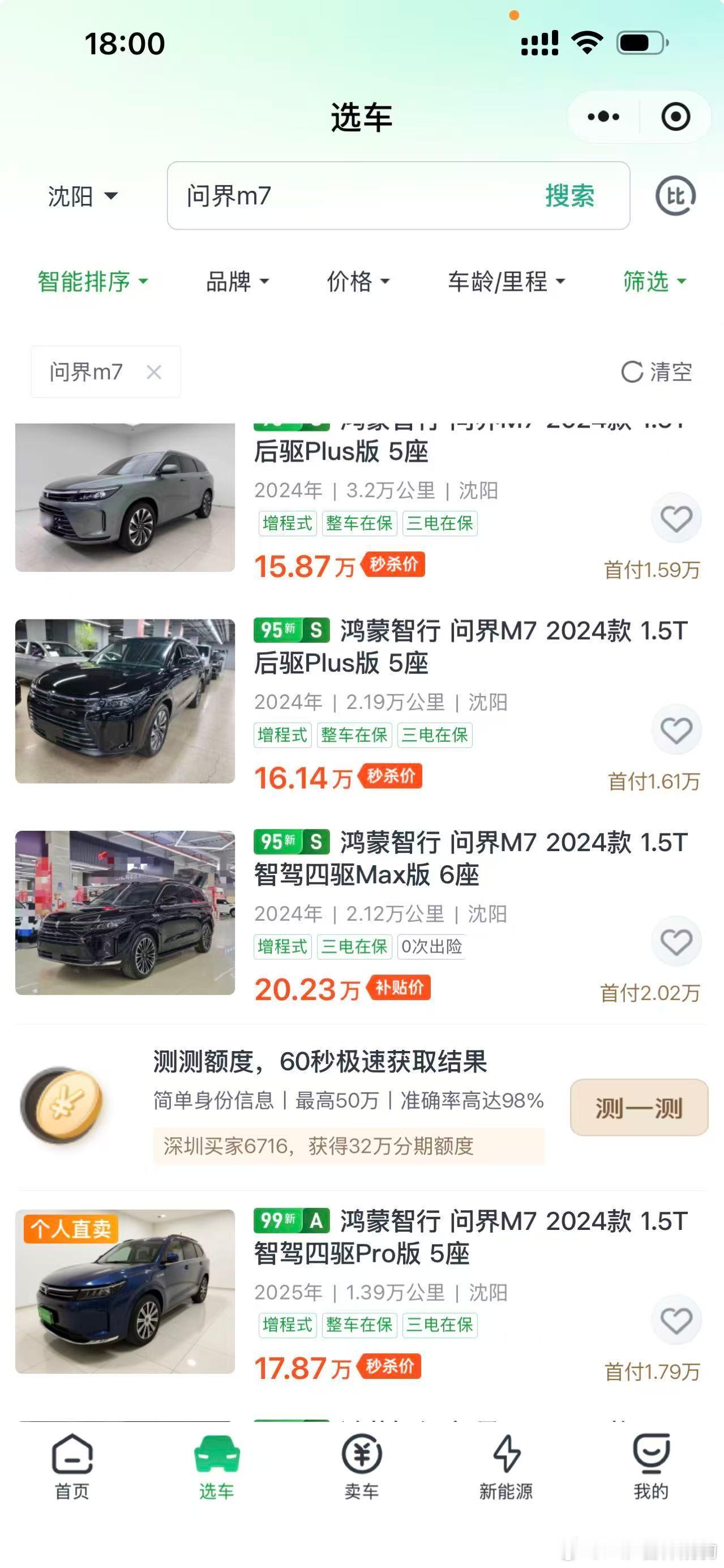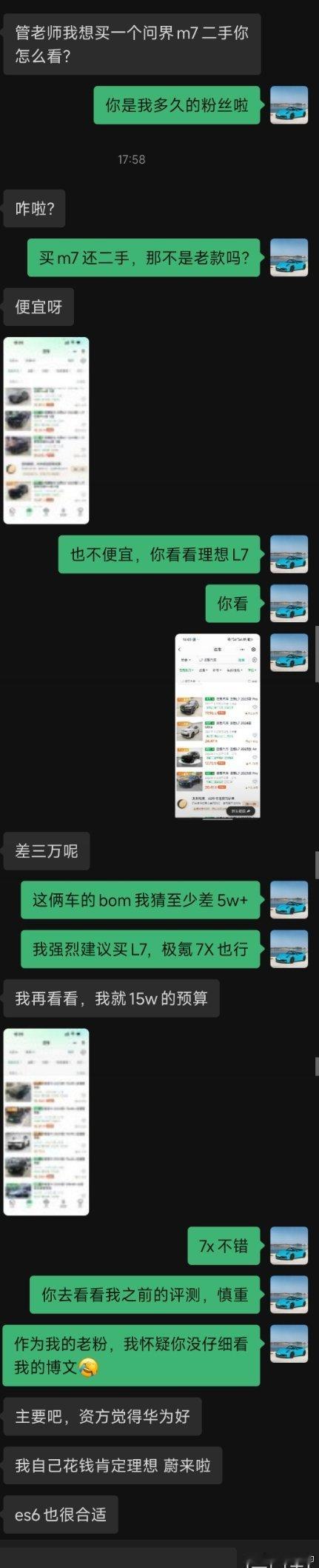 一个两年的老粉要买一台二手车首选问界M7,我感到很挫败还好他说【资方喜欢】我推荐理想L7,极氪7X和蔚来ES6话说二手便宜的离谱了!24年的车竟然都是20w以下