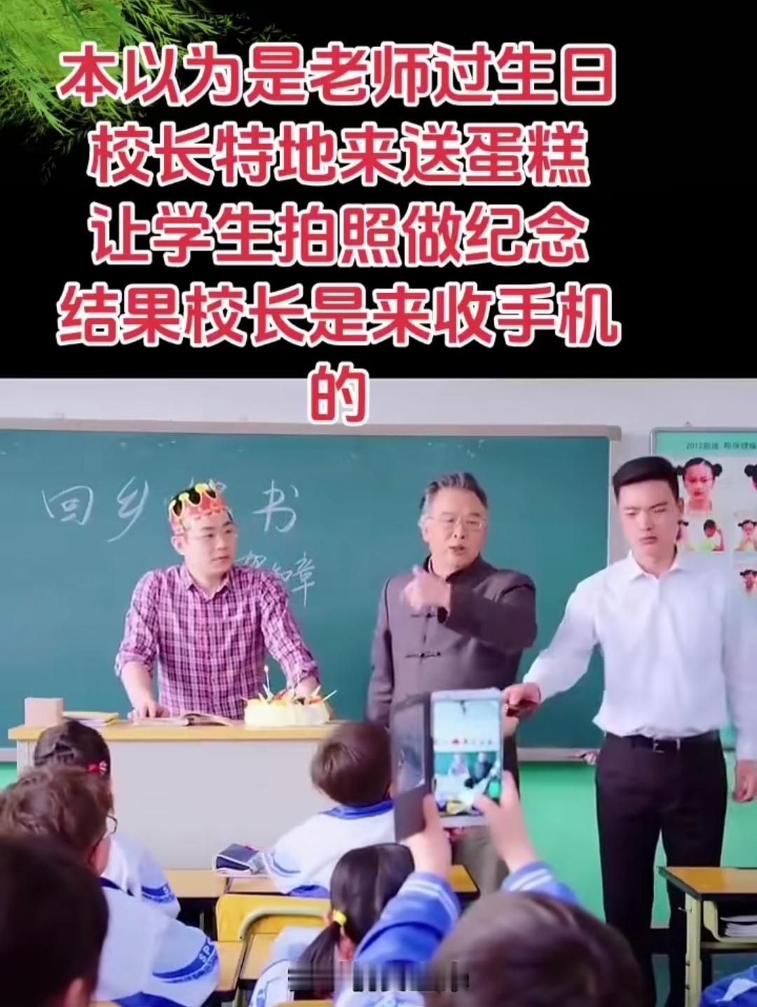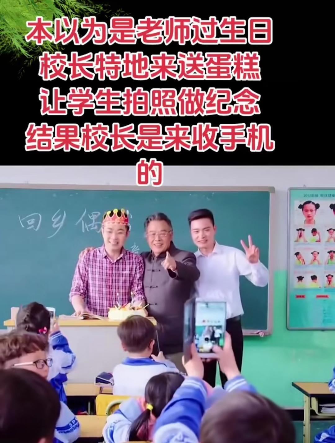 看着校长和另一位老师端着蛋糕走进教室,还示意学生拍照留念。在这温馨动人的时刻,学生们原以为校长是来为老师庆祝生日的。谁能想到,那些有手机的学生竟被他们算计了,他们此行的目的是收缴学生的手机。 校长和老师此举,看似是对学生和家长负责,对学生带手机进教室的行为也确实能起到惩戒效果。然而,这种“钓鱼执法”带来的负面影响也不容小觑,会让学生对老师失去信任。毕竟学生的手机都是藏起来的,若没有校长的示意,他们不会拿出手机记录这“感人瞬间”。如此一来,直接浇灭了他们对老师的热情。 学校定制蛋糕