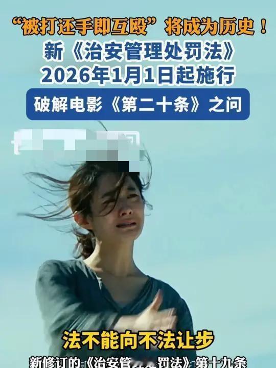 重磅!2026年起“被打还手即互殴”成历史,法律终于为正当防卫撑腰! 谁还没听过“挨打要立正,还手就拘留”的无奈?以前遇到醉汉挑衅、无赖动手,受害者敢还手怕被定互殴,忍气吞声又咽不下这口气,“各打五十大板”的和稀泥执法曾让无数人寒心。 但从2026年1月1日起,这一切都要变了!新修订的《治安管理处罚法》正式实施,首次在治安领域明确正当防卫合法地位——为了制止正在进行的不法侵害而还手,只要没超过必要限度,就不算违法,不受处罚! 山东餐馆女老板的遭遇就是最好的证明:被醉汉三次殴打后被迫用啤酒瓶反击,最初被认定“互殴”行政拘留,历经五年抗争才改判正当防卫。而今后,这样的委屈不用再靠漫长诉讼洗刷,法律直接给好人“撑腰”! 当然也不是“想怎么还手就怎么还手”:得是针对正在进行的侵害,只能反击侵害人本人,力度不能明显超过必要限度(比如对方推搡,就不能用凶器反击)。简单说就是“别人打你时能还手,但不能别人停手了你还追着打”。 这次修法最牛的是啥?它明确了“法不能向不法让步”!以后遇到不法侵害,不用再纠结“还手会不会被拘留”,该维权就维权,但记得保留监控、证人等证据,让正义不缺位也不越界。 法治的进步,不就是让好人敢挺直腰杆,让坏人不敢肆意妄为吗?扩散给身边人,2026年起,咱们都有了依法自保的硬底气!