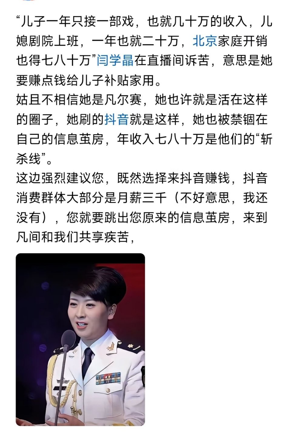演员闫学晶哭穷引争议 被骂不冤,当富人开始用穷人的语言诉苦,穷人只能用自己的方式夺回话语权,这不是仇富,这是语义自卫。