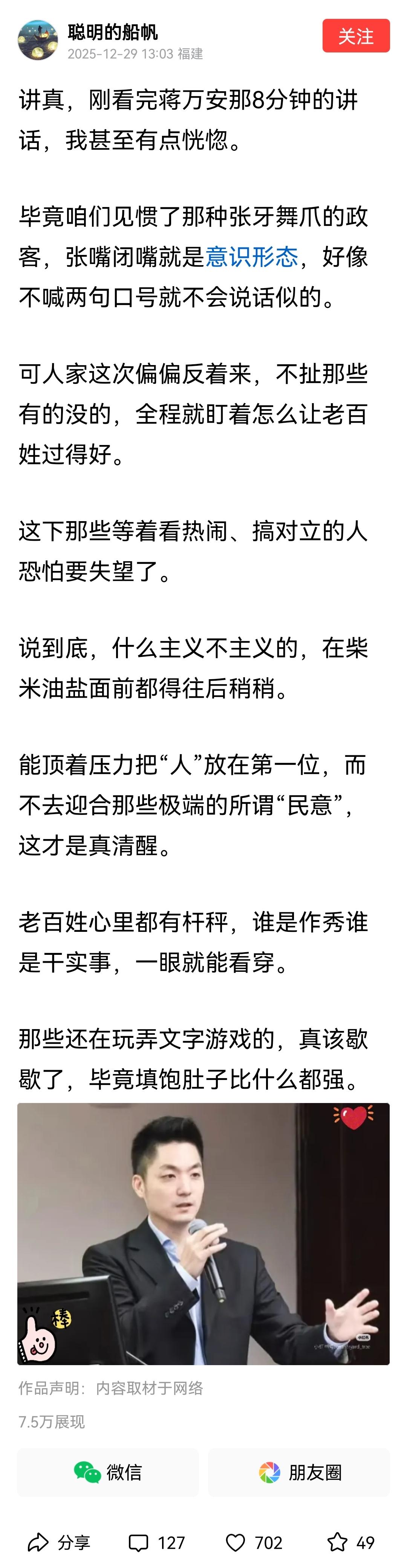你们俩@仙人掌的坚强@聪明的船帆都是福建IP,发的内容相似,互相认识么。