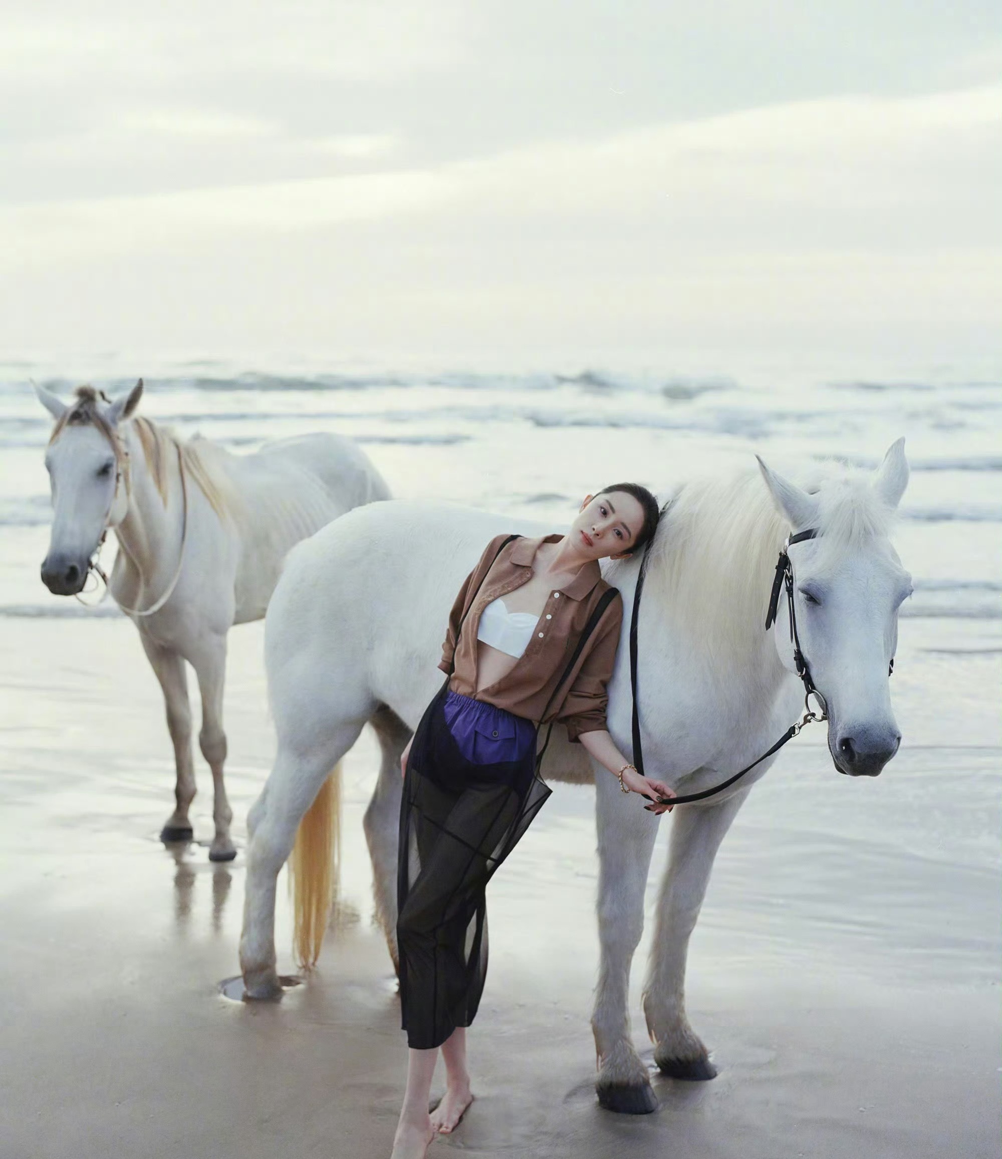 杨幂 你看又一个拍婚纱的杨幂海边女骑士vogue大片🈶,表现力好🐮!