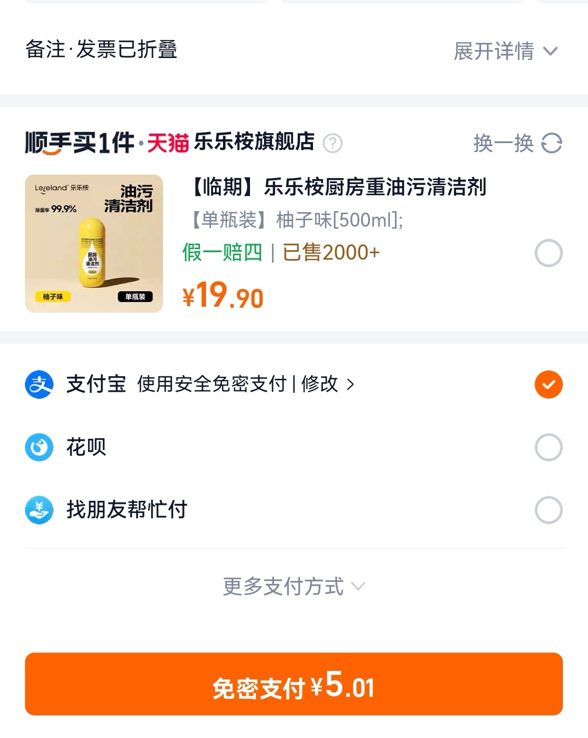各位试试加购点乐乐桉的东西然后看看有没有这个临期的油污清洁剂真的巨好用!!!!!那个瓶子还有重力球可以倒着喷!!!信我快过年了,买来用用很合适无异味,不伤手,去油强