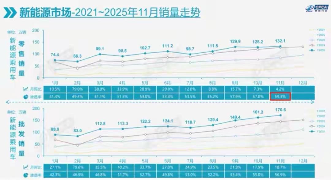 新能源汽车渗透率近60%了,就是10台车里就有6台新能源车。
