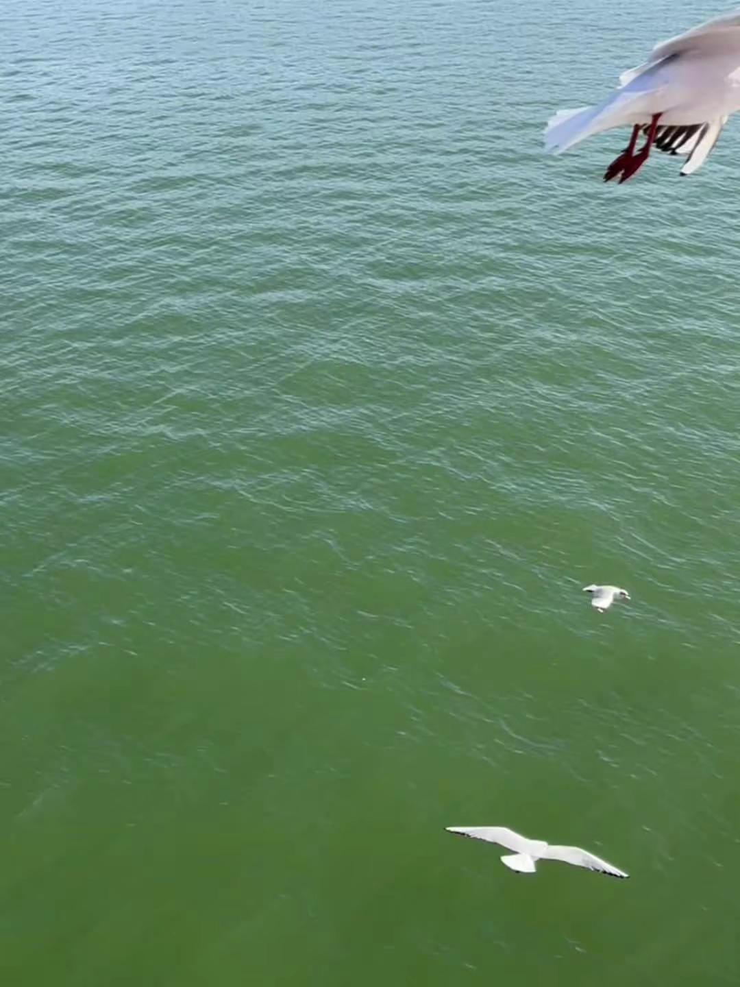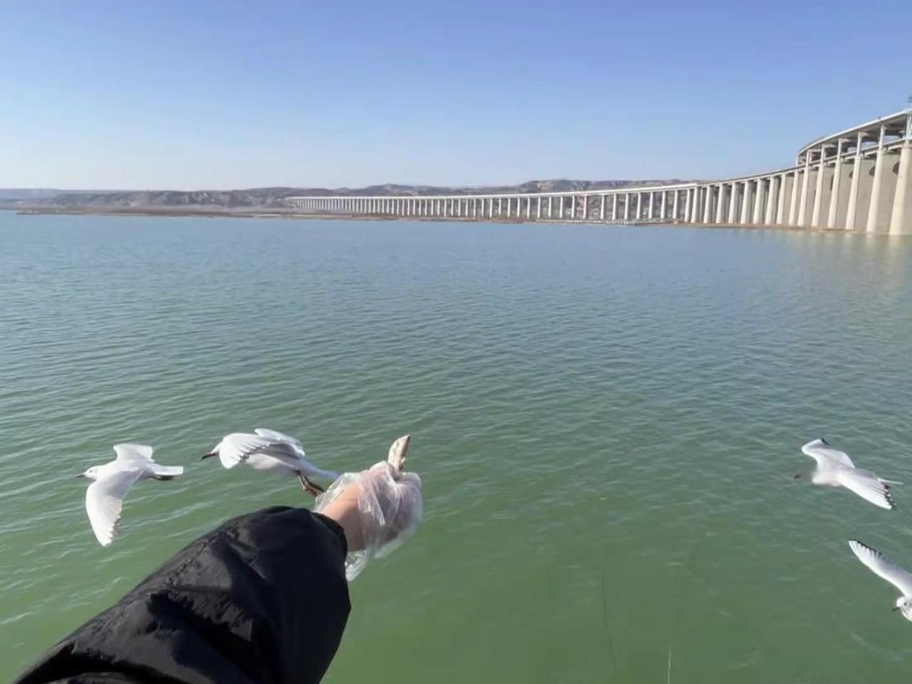 海鸥抢食大战 在三门峡,坐天鹅号轮船,欣赏红嘴海鸥黄河上空飞翔