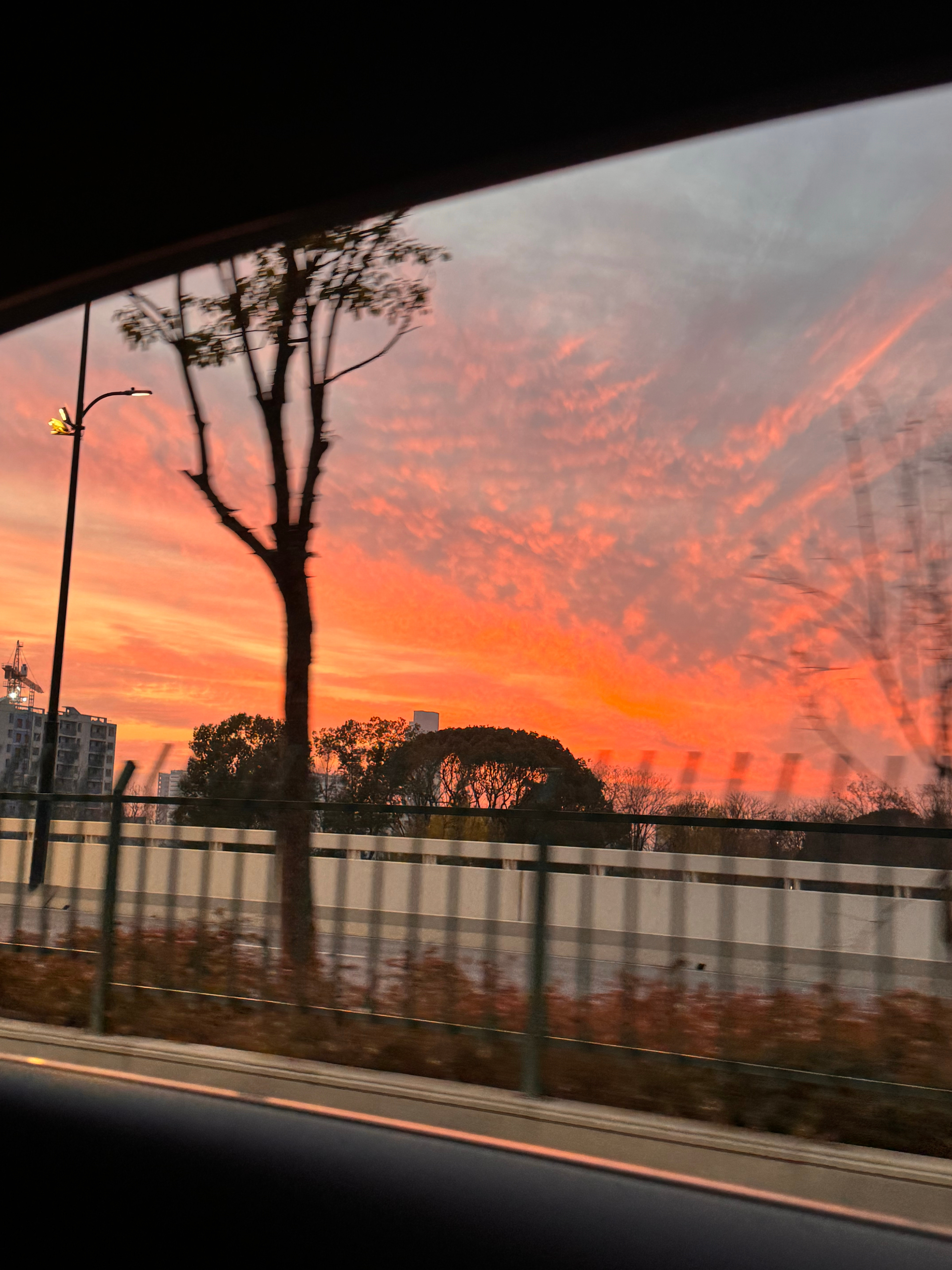 今天去西湖那边拍照了,回来路上看到好漂亮的晚霞,早知道就在那边等等了!
