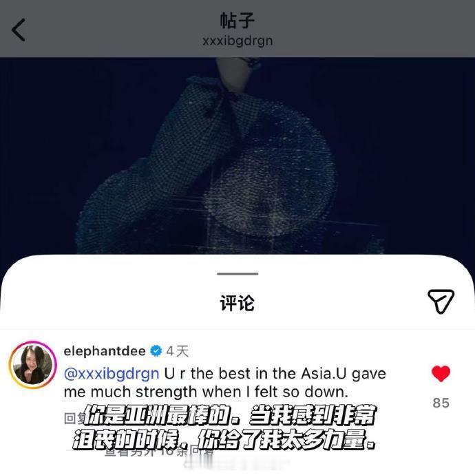 小S感谢权志龙 小S在权志龙ins下留言:“你不知道,你给了我多大力量来面对这个世界,太感谢你了。”“当我感到沮丧时,你给了我太多力量。”
