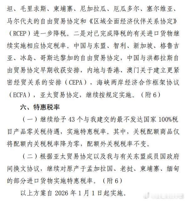 自2026年1月1日起对部分商品的进口关税税率和税目进行调整。