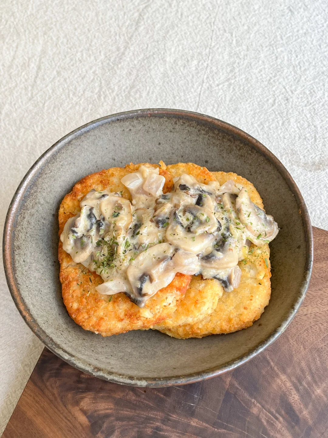 淋上自己做的奶油蘑菇酱 好吃到停不下来呢