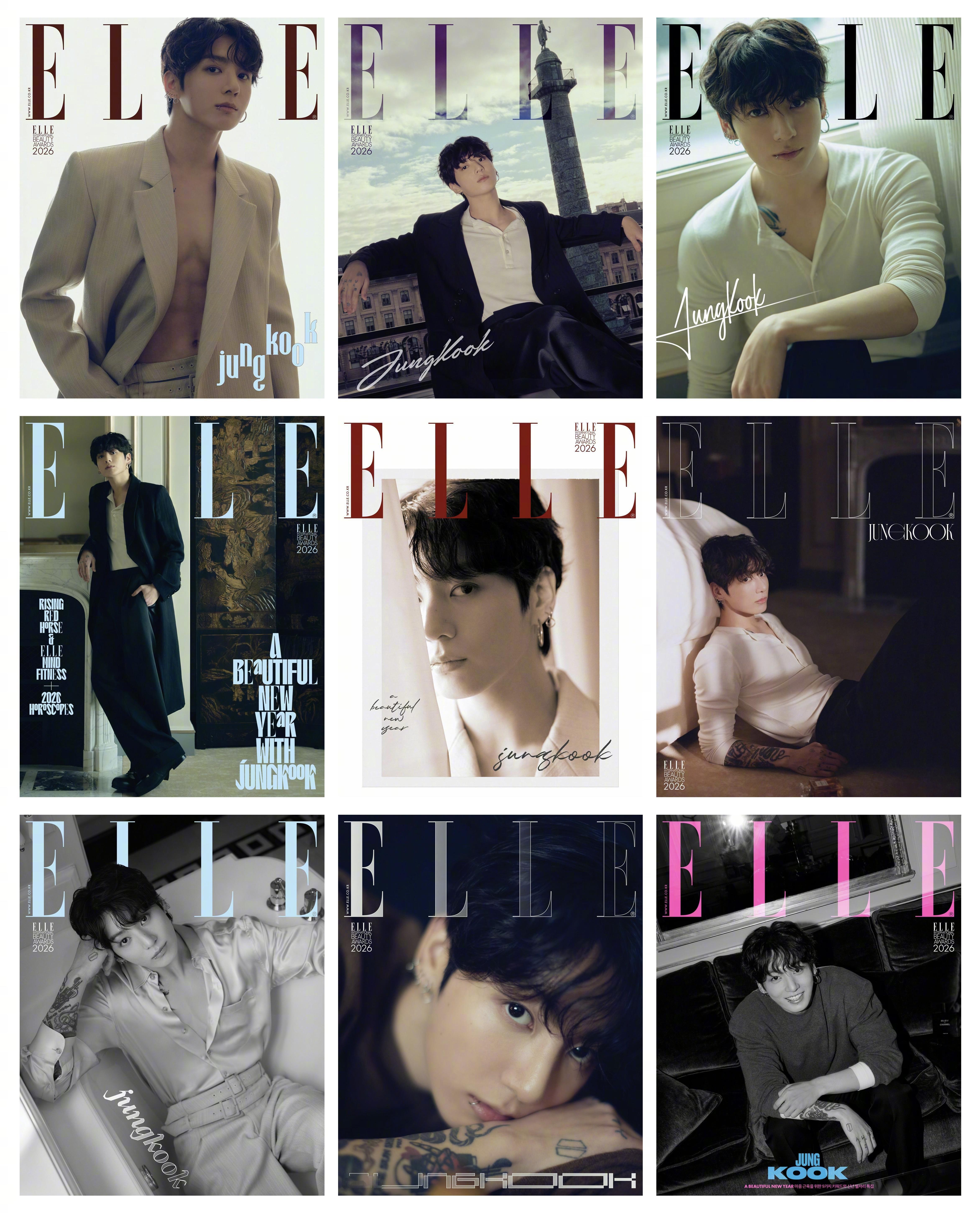 田柾国 ELLE KOREA 2026年一月号封面人物,刚官宣Chanel Beauty全球合约,立马带着开年九封登场,致敬香奈儿女士,拍摄于巴黎丽兹酒店套房,随性自在状态,馥郁芬芳香气,从蔚蓝男香到经典N°5,优雅温柔的画报氛围~ 📸💐🫧