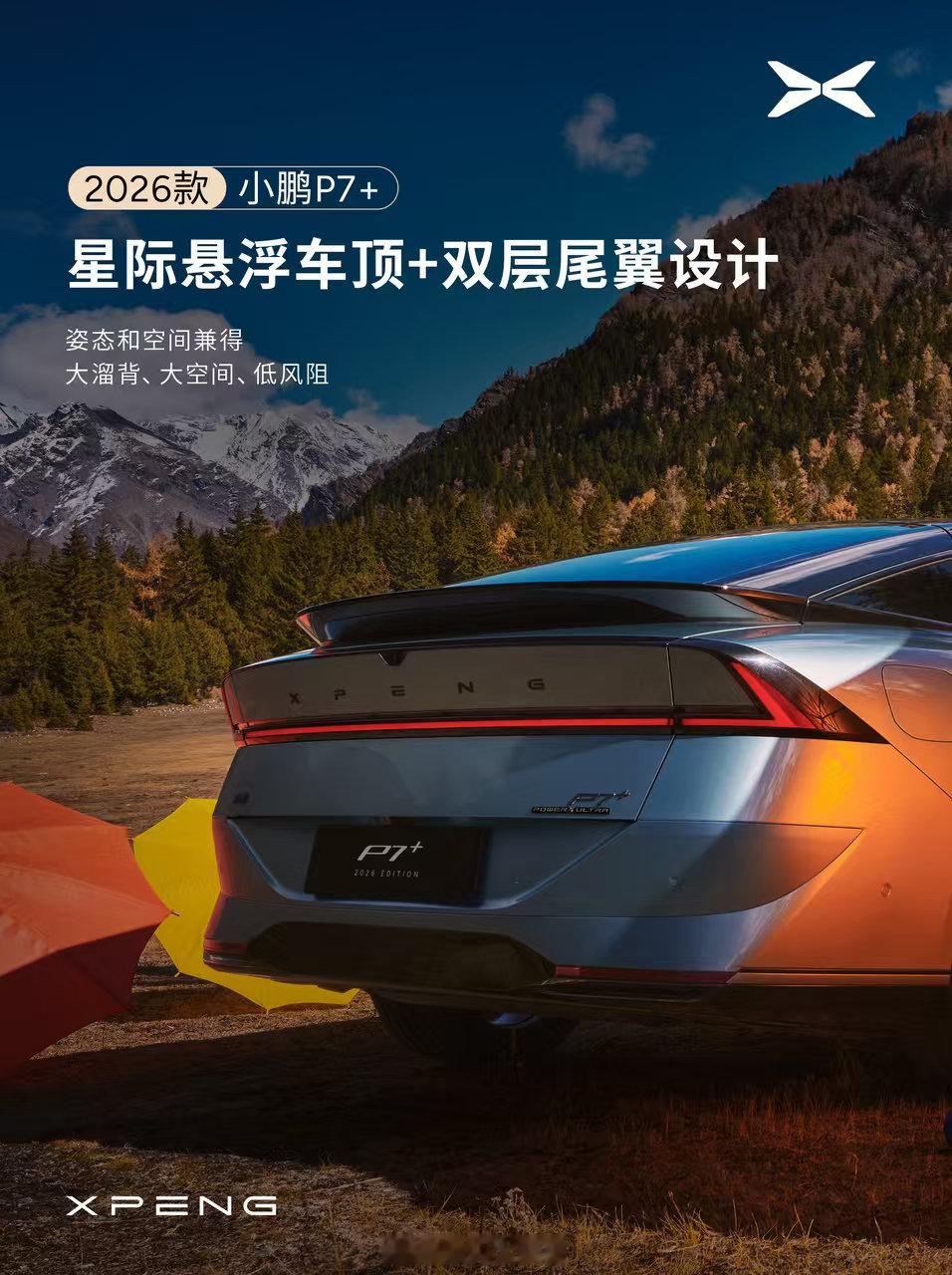 2026款小鹏P7+震撼首发,采用全新外观色「星镜蓝」,并引入全球顶级豪车同款车漆工艺。新车前脸与尾部分别升级为一体式星翼及星轨贯穿灯组,搭配星际悬浮车顶、双层尾翼、AGS主动进气格栅及20英寸运动轮毂,在优雅姿态中兼顾空间表现,重塑轿跑体验。与此同时,新华网高度评价小鹏汽车通过P7+等全球车型的布局,成功向海外输出兼具舒适与智能的中国方案,肯定其作为中国汽车出海破局者,正以智能化优势重塑中国汽车的全球角色。新款小鹏P7+质感全面升级新款小鹏P7+外观首曝央媒发文点赞小鹏P7+
