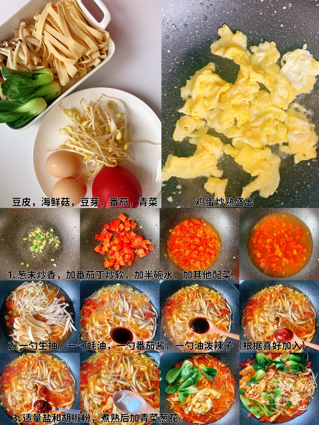 主料:豆皮,海鲜菇,豆芽,鸡蛋,番茄🍅,青菜🥬