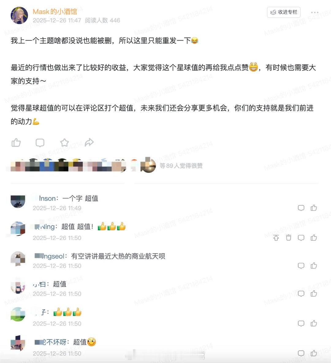为什么大多数人在A股亏钱?1.有大事这文章给出来了一个组合,大家可以去看看:「机会来了!」最近星球表现得还是不错的,星球的朋友们也都有正向反馈,给了我们两个大字:「超值」!:所以今天就再给大家介绍一下星球~很多人问我:财富自由到底靠什么?有人说靠努力,有人说靠运气,还有人说靠关系。这些都对,但都不是本质。巴菲特的合伙人查理·芒格说过一句话:"想要得到某样东西,最好的办法就是让自己配得上它。"大白话就是:你想要财富自由,首先得让自己具备财富自由的能力。什么能力?占有生产资料的能力,而不是被生产资料占有。打工是用时间换钱,时间卖完了,钱也就到头了。但如果你拥有一家公司的股份、一套收租的房子、一个能持续产生现金流的资产,那才是真正的生产资料。这个星球,就是在教大家:如何以更低的成本,去占有生产资料。一、为什么大多数人在A股亏钱?我先问你一个问题:你觉得价值投资在A股有用吗?很多人会说:没用,价值投资就是个笑话。我理解这种情绪。因为太多人打着"价值投资"的旗号亏了钱,然后就骂价值投资是骗人的。但你仔细想想,他们真的在做价值投资吗?不是的。他们只是在价值投机。什么意思?就是他们听说茅台是好公司,然后在2600块的时候冲进去,结果被套了。套了之后不甘心割肉,于是安慰自己说:"没事,我是价值投资,长期持有就行。"等了两年,股价还在跌,他就开始骂:价值投资没用!但问题是,这根本不是价值投资,这是追高被套,被迫躺平。巴菲特说过一句非常重要的话:"以合理的价格买入一家优秀的公司,远比以便宜的价格买入一家平庸的公司要好得多。"注意,他说的是"合理的价格",不是"任何价格"。茅台是好公司吗?是的。但2600块的茅台是好投资吗?不一定。很多人亏钱的根本原因,不是选错了公司,而是买得太高了。就像你去菜市场买菜,白菜很好吃,但如果有人卖你100块钱一斤,你买不买?肯定不买,因为太贵了。但到了股市里,很多人就忘了这个道理。他们只看公司好不好,不看价格贵不贵。这就是为什么大多数人在A股亏钱的真正原因。二、什么是真正的价值投资?那什么才是真正的价值投资呢?很简单:在低位买入,在高位卖出。你可能会说:这不是废话吗?谁不想低买高卖?问题是,大多数人做的恰恰相反——高买低卖。为什么会这样?因为人性。当股价一直涨的时候,你会觉得它还会继续涨,于是你追进去了。当股价一直跌的时候,你会觉得它还会继续跌,于是你割肉了。结果就是:永远在高点买入,在低点卖出。巴菲特说:"别人贪婪时我恐惧,别人恐惧时我贪婪。"这句话人人都会背,但真正能做到的人少之又少。为什么?因为做到这一点需要两样东西:第一,你得知道什么是"高",什么是"低"。很多人根本分不清高低。他们只是凭感觉,觉得涨了就是高,跌了就是低。但这种感觉往往是错的。真正的高低,要看估值,看基本面,看行业周期,看宏观环境。这需要专业的分析能力。第二,你得有独立思考的能力,不被市场情绪左右。当所有人都在恐慌抛售的时候,你敢不敢逆势买入?当所有人都在疯狂追涨的时候,你敢不敢冷静卖出?这需要强大的心理素质,更需要对投资的深刻理解。三、我们能帮你做什么?说了这么多,回到正题:这个星球能帮你做什么?第一件事:帮你发现低位的机会。这是我们最核心的价值。我们会持续跟踪市场,分析各个行业、各个公司的基本面和估值水平。当我们发现某个资产被严重低估的时候,我们会提示机会;当我们发现某个资产被严重高估的时候,我们会提示风险。在公众号上,我们一般只会说一个结果。但是在星球上,我们会告诉你:是什么?为什么?怎么做?不仅告诉你结论,还告诉你得出结论的过程。因为只有理解了过程,你才能真正学会独立判断。而且星球上会有很多公众号没有的品种。毕竟公众号一天只能发一篇文章,但星球可以发很多篇。更多的机会、更多的分析、更多的洞察,都在星球里。第二件事:帮你建立自己的投资体系。这一点可能比第一件事更重要。芒格有一句名言:"我这一生遇到的聪明人,没有一个不是每天读书的。"投资不是赌博,不是靠运气。投资是一门学问,需要系统地学习和积累。我们希望做到的是:授人以鱼,不如授人以渔。只说看到了什么机会,你可能赚一次钱。但教会你判断高低的方法,你可以赚一辈子的钱。所以在星球里,我们不仅会分享我们看到的机会,更会分享我们的思考框架、分析方法、决策逻辑。让你慢慢建立起属于自己的投资体系。有了这个体系,你不仅能在A股里游刃有余,在人生的其他选择中,你也能做出更好的决策。四、投资思维对人生的意义为什么我说投资体系对人生也有用?因为你的人生本身就是一场投资。小到今天吃什么、周末去哪玩,大到和谁结婚、去哪买房、进入哪个行业、加入哪家公司——你的每一个选择,本质上都是一次投资行为。你在用你的时间、精力、金钱,去换取某种回报。如果你能用投资的思维去看待人生,你会发现很多事情变得清晰了:选择行业,就像选择赛道。要选那些长期向上、天花板高的行业。选择公司,就像选择标的。要选那些管理优秀、文化健康的公司。选择伴侣,就像选择合伙人。要选那些价值观一致、能够共同成长的人。而最重要的是:不要在错误的事情上坚持太久。很多人在一段糟糕的关系里死耗,在一个