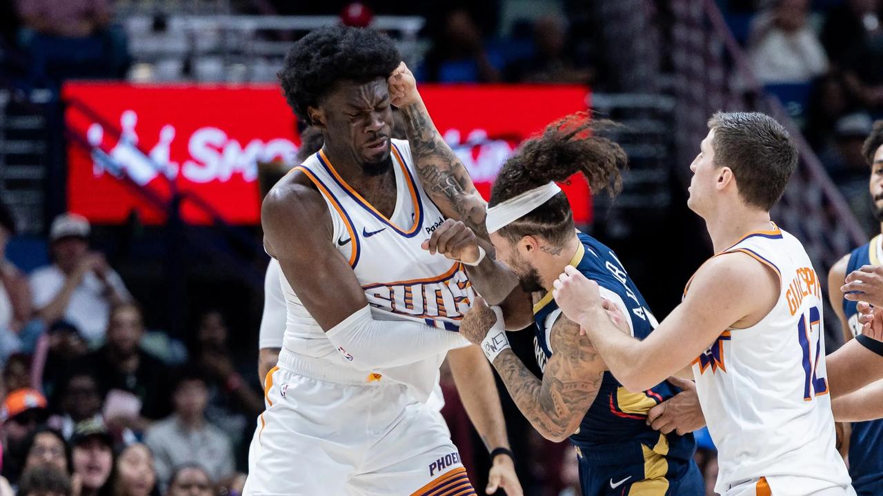 NBA官方宣布,对新奥尔良鹈鹕后卫 何塞·阿尔瓦拉多 处以两场禁赛,同时对菲尼克斯太阳中锋 马克·威廉姆斯 处以一场禁赛,起因是两人在周六晚的比赛中发生肢体冲突。 冲突发生在第三节,当时太阳取胜的那场比赛中,阿尔瓦拉多与威廉姆斯情绪失控,双方都有出拳动作,联盟随后介入并作出处罚决定。 根据安排,阿尔瓦拉多将缺席鹈鹕接下来主场对阵 尼克斯 和 公牛 的两场比赛;威廉姆斯则将缺席周一太阳对阵 奇才 的比赛。