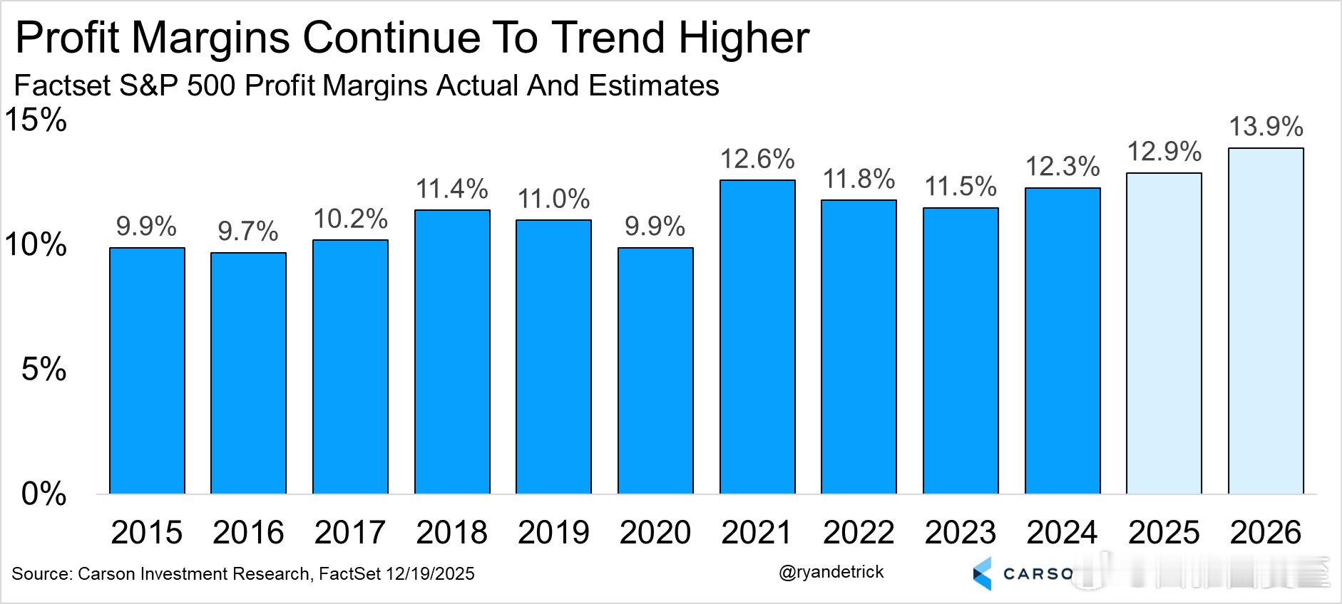 市场对2026年标普500企业的预期:EPS:近$310Profit Margin:近14%都是继续增长的趋势📈