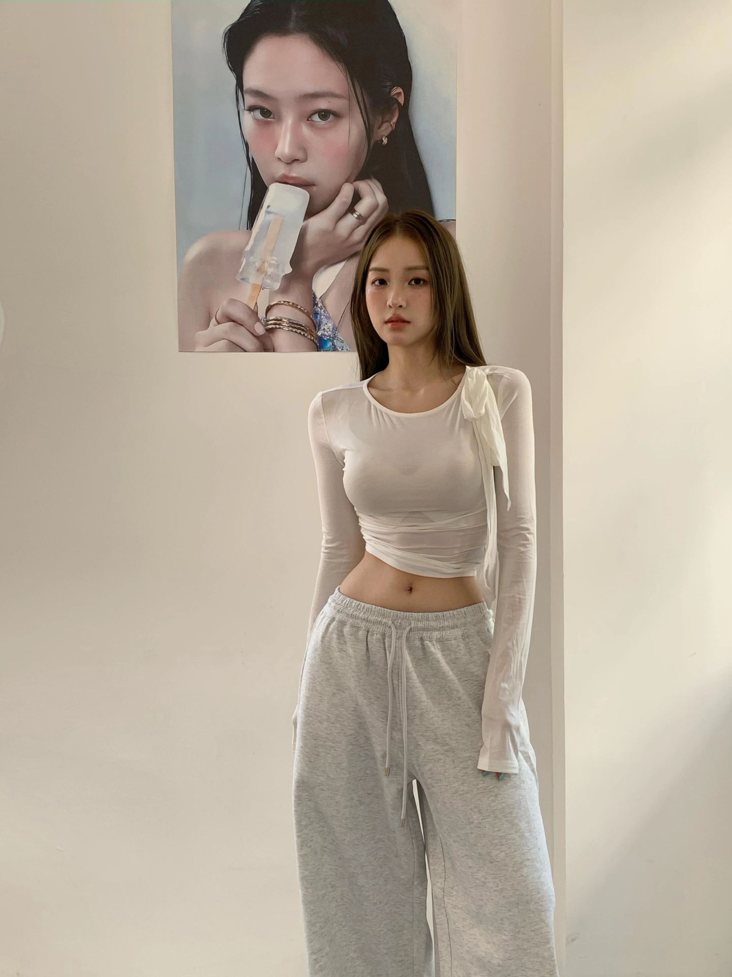 白衫是薄瓷的容器盛着心跳与呼吸绿裤是柔韧的藤缠裹着骨骼的倔强~柳丝拂