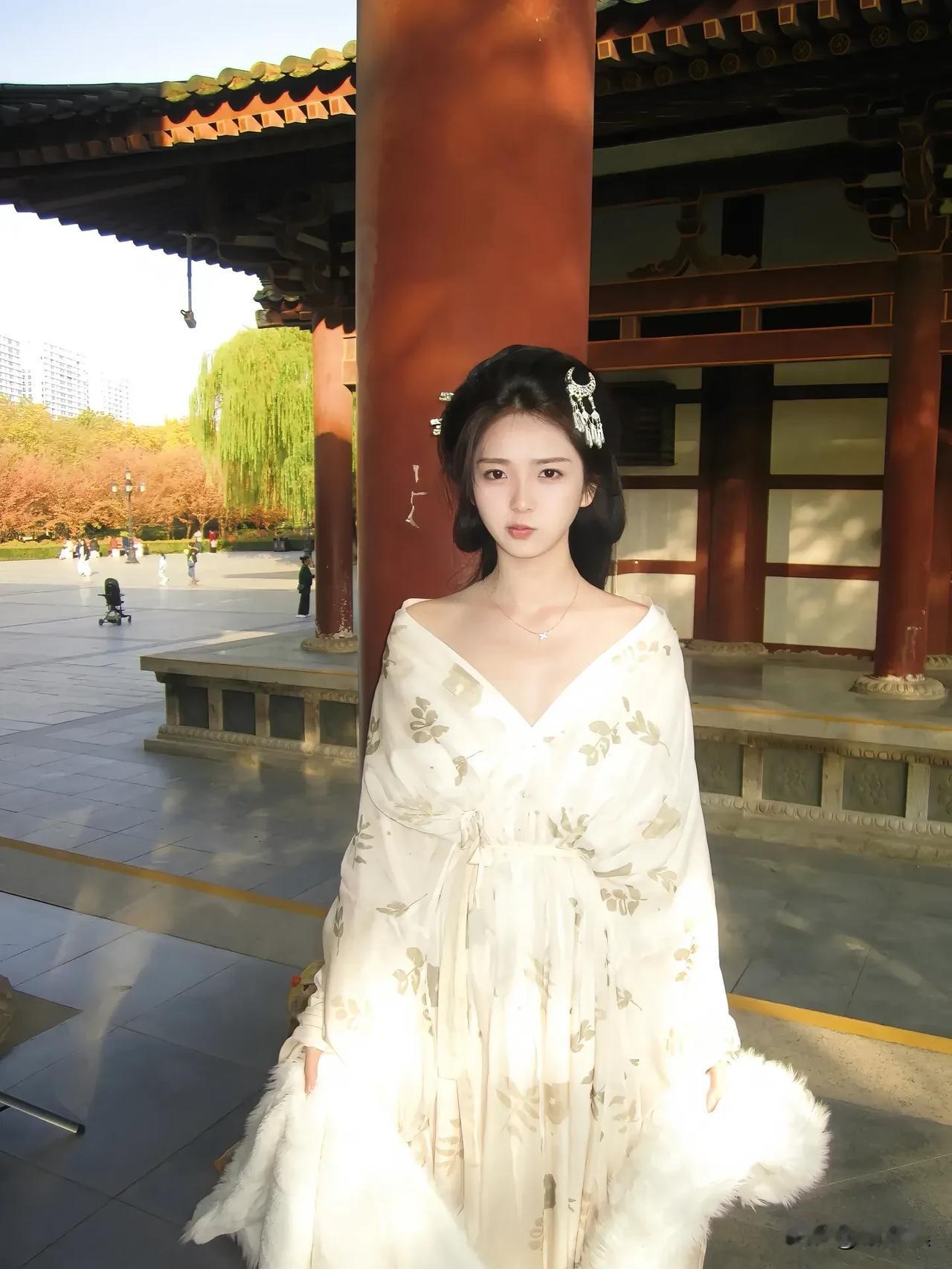 冬日暖阳下的温柔少女,毛绒外套温暖相伴。🌞💕