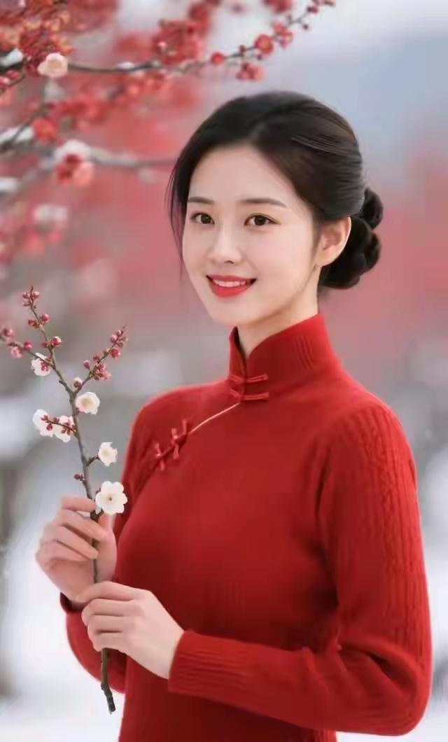针织旗袍,艳若梅花 出水芙蓉,千娇百媚。 美若冠玉,艳若桃花 国色天香,国色天姿 微微一笑百媚生, 梅花独放共争春。