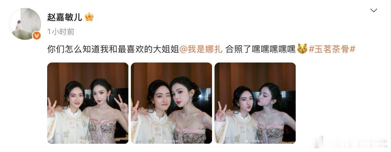 赵嘉敏晒与娜扎合照、娜扎赵嘉敏合照 我天啊‼️啊啊啊啊啊啊,看到这里满满的惊喜,赵嘉敏晒与娜扎合照,哈哈哈哈哈,一整个支棱起来了,赵嘉敏表示娜扎是自己最喜欢的大姐姐,哈哈哈哈哈,好可爱的一枚啊。一分耕耘一分收获,赵嘉敏脚踏实地的走好每一步,就是这个赵嘉敏好带感啊,每次都会带给大家不一样的惊喜,继续冲呀!跨年热梗制造机
