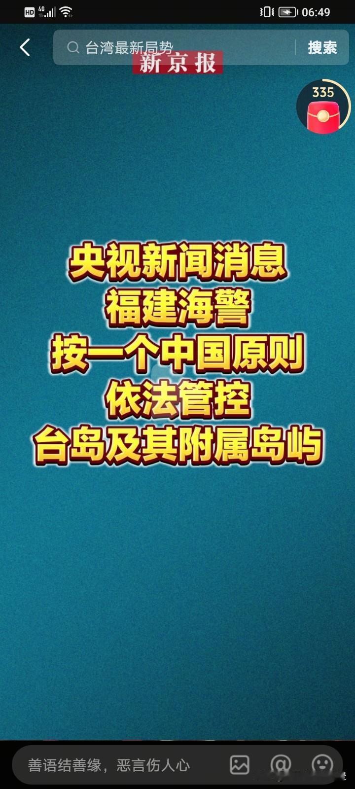 真提气,一觉醒来福建海警开始管控台岛及其附属岛屿了,这应该是今年听到的最好的消息,小孩不听话那就要教训一下,希望2026年能到台湾旅行,看看那美丽的日月潭,是不是和之前所学的教材里的那么漂亮。 感觉对面的那些人犹如秋后的蚂蚱,蹦哒不了几天,它们每蹦哒一次,我们就向前推进几步,直到它们没牌出,那我们就可以顺手收拾它们了。