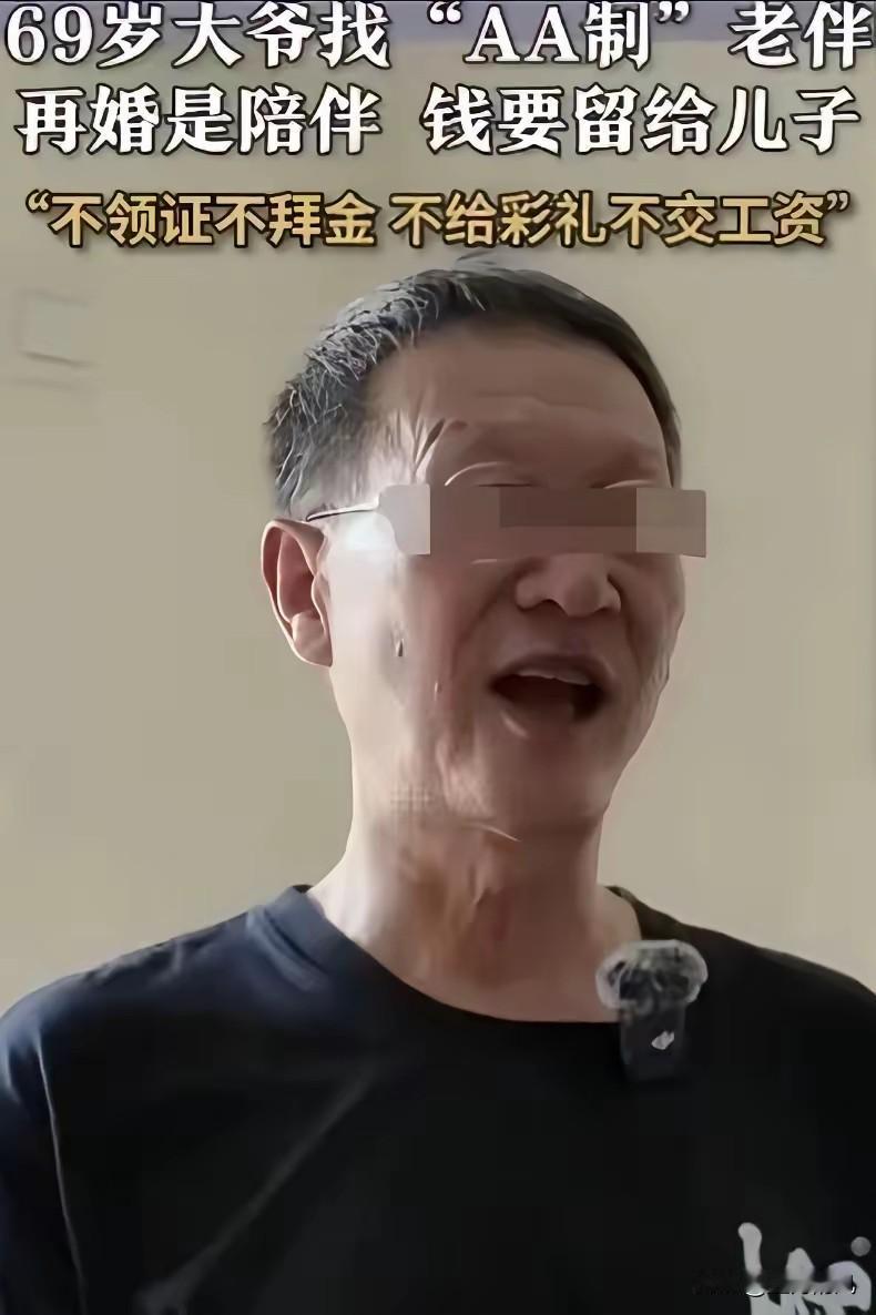 这位上海69岁大爷 真是“铁公鸡”中的战斗鸡 一毛不拔到了姥姥家 退休金八千 房租八千 长相还文质彬彬 温文尔雅 咋看都是优质黄昏恋对象 结果一提找老伴的要求 直接让人大跌眼镜 不领证 不拜金 不给彩礼 还不交工资 存款全部留给儿子 这哪是找老伴啊 分明是厚脸皮想白嫖 就想“空手套白狼” 找个“免费保姆” 既要免费做家务 还想让人免费陪睡 简直是异想天开 痴人说梦 估计全上海的阿姨都得离他远远的 毕竟谁也不是闲得慌来做慈善的 大爷这番自作聪明操作 真是小刀剌屁股——开了眼了 图源网络 若侵即删