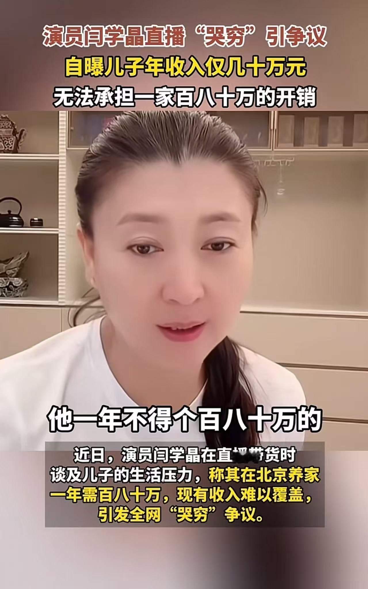 演员闫学晶直播带货时“哭穷”,说儿子年收入仅几十万元,无法承担一家百八十万的开销,让网友多买货让她多赚点钱帮儿子分担压力…… 这件事情引发了广泛的讨论,反映出社会对于明星“哭穷”行为的复杂态度和对贫富差距的敏感关注。 事件概要: 演员闫学晶在直播带货时,谈及她儿子在北京养家的压力,称一年需百八十万的开销,但儿子和儿媳的收入远远达不到这个数字。 她描述家庭的高消费、房贷、育儿、教育等压力,试图表达家庭的困境。 这一说法引起网友的激烈反应,有人表示同情,甚至有人决定捐款帮助;也有人批评这种“哭穷”是炫富或炒作,觉得离普通人生活太远。 社会背景与评论: 许多网友认为,明星的高收入与普通百姓的现实生活形成鲜明对比,他们的“压力”在普通人看来或许是无病呻吟或虚伪的表演。 公众普遍关注贫富差距,觉得明星“哭穷”有时是在炫耀财富或制造同情,缺乏真诚。 有人指出,明星享受高片酬和奢华生活,却在公众面前表现出“困境”,这让普通人觉得不公平甚至反感。 核心问题: 贫富差距:社会收入不平等依然严重,明星的财富与普通人差距巨大。 表达方式:明星在公众场合的“哭穷”是否真诚,还是一种营销策略或虚假表现。 社会责任:公众期待明星能正面传递价值观,关注社会现实,而非炫耀财富或制造矛盾。 建议与反思: 公众应理性看待明星言行,不盲从盲信,理解背后可能的炒作或情绪表达。 明星应多关注社会现实,传递正能量,避免虚伪或炫耀式的“哭穷”。 社会应持续推动财富公平,缩小贫富差距,让普通人也能感受到更多的公平与尊重。 总结: 这次事件揭示了公众对明星“哭穷”的敏感和对贫富差距的关注,也提醒我们要理性看待社会中的各种表象。无论明星还是普通人,都应以真诚和责任心面对生活,共同推动社会的公平与和谐。