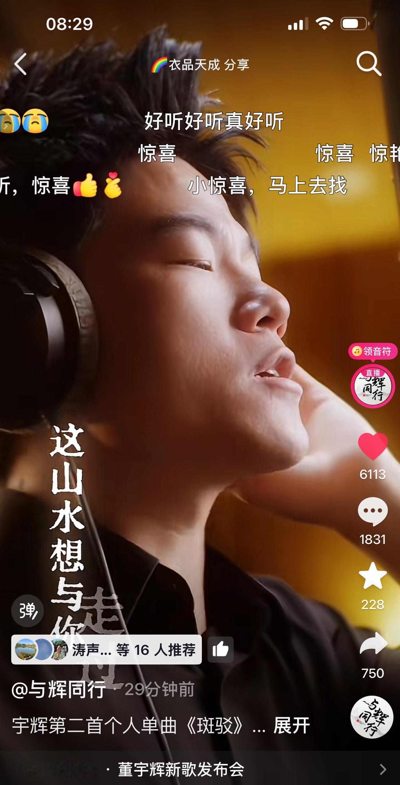 董宇辉的第二首单曲《斑驳》今天上线! “雨晕开未干的墨, 替我勾勒将说未说, 这山水想与你走过, 这时光想与你斑驳!” 这歌词太有意境了。 宇辉的音色非常独特, 他唱起来总是那么深情款款, 直入人心。 第一首《吾乡》被传唱成了经典, 这即将上线的第二首单曲, 又将会是如何惊艳? 董宇辉