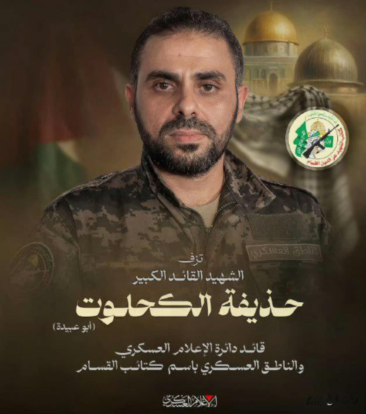 “胡扎法·阿尔·卡赫洛特,化名"阿布·奥拜达"。“卡桑旅军事发言人、军事信息部指挥官,卡桑旅今天宣布他已战死。“二十年来,世人只闻其声而不见其颜。“而新的阿布·奥贝达已经诞生了(图6)。