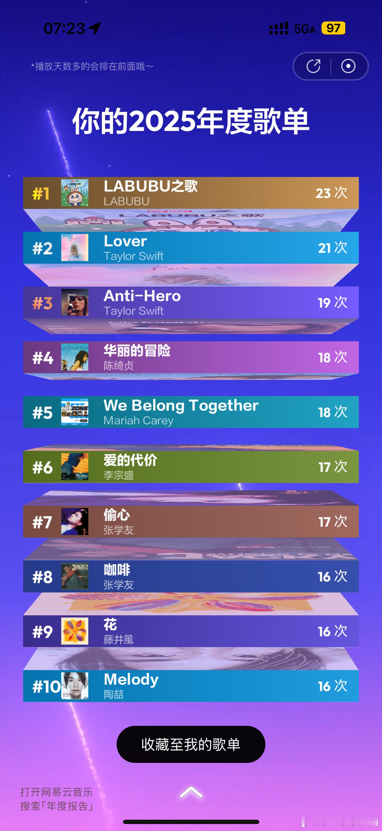 我年度歌单好像跟你们不太一样是不是哪儿出问题了?