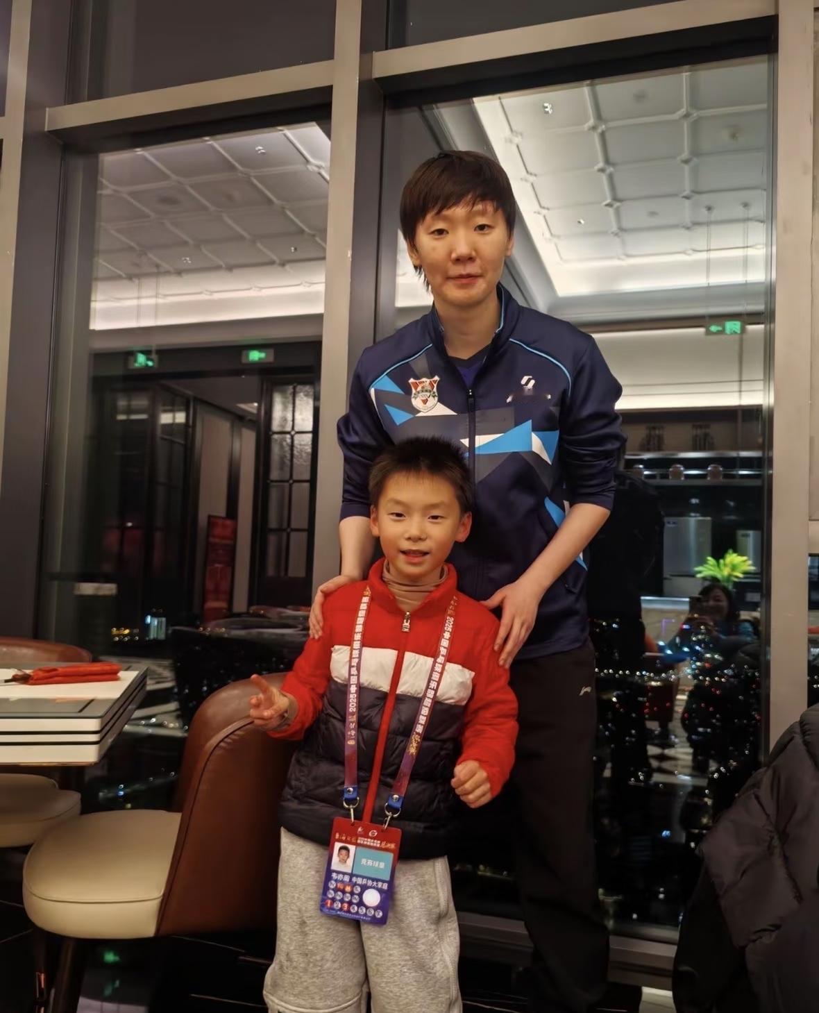 乒超联赛总决赛期间,与小球迷合照的王曼昱。曼昱这张照片看起来非常亲和开朗,果真是独宠小朋友的王曼昱! 小朋友找曼昱要签名,会毫不吝啬给签名。小朋友要合照,也是完全配合,亲切合影。球迷看到都说羡慕小朋友们了!