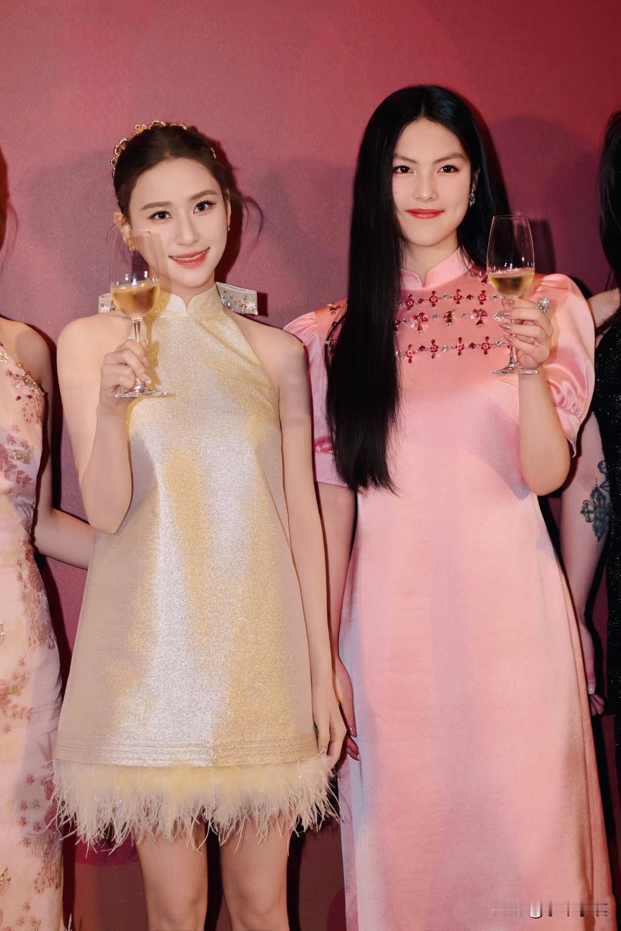 李湘分享的王诗龄出席活动照片,看得出小姑娘穿的粉色旗袍式礼服裙应该价格不菲。 缎面面料尽显高级感,我很喜欢领口的珠饰设计,精巧、别致工艺应该是全手工缝制,满满的奢感。 光看这些细节就知道这件礼服价值不菲,豪门千金的穿搭果然不一般✨ 另外图一香槟金礼服也很高级,斜肩式立领、下摆流苏羽毛设计都很有特色。