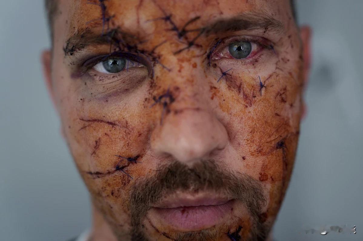 “脸” ––照片人物是乌克兰军人特西姆·克里沃舍夫(Tesym Kryvoshov),第63机械化旅的下士,他那张布满缝合线的面部,成为俄乌扎波罗热日亚战斗的具象缩影。