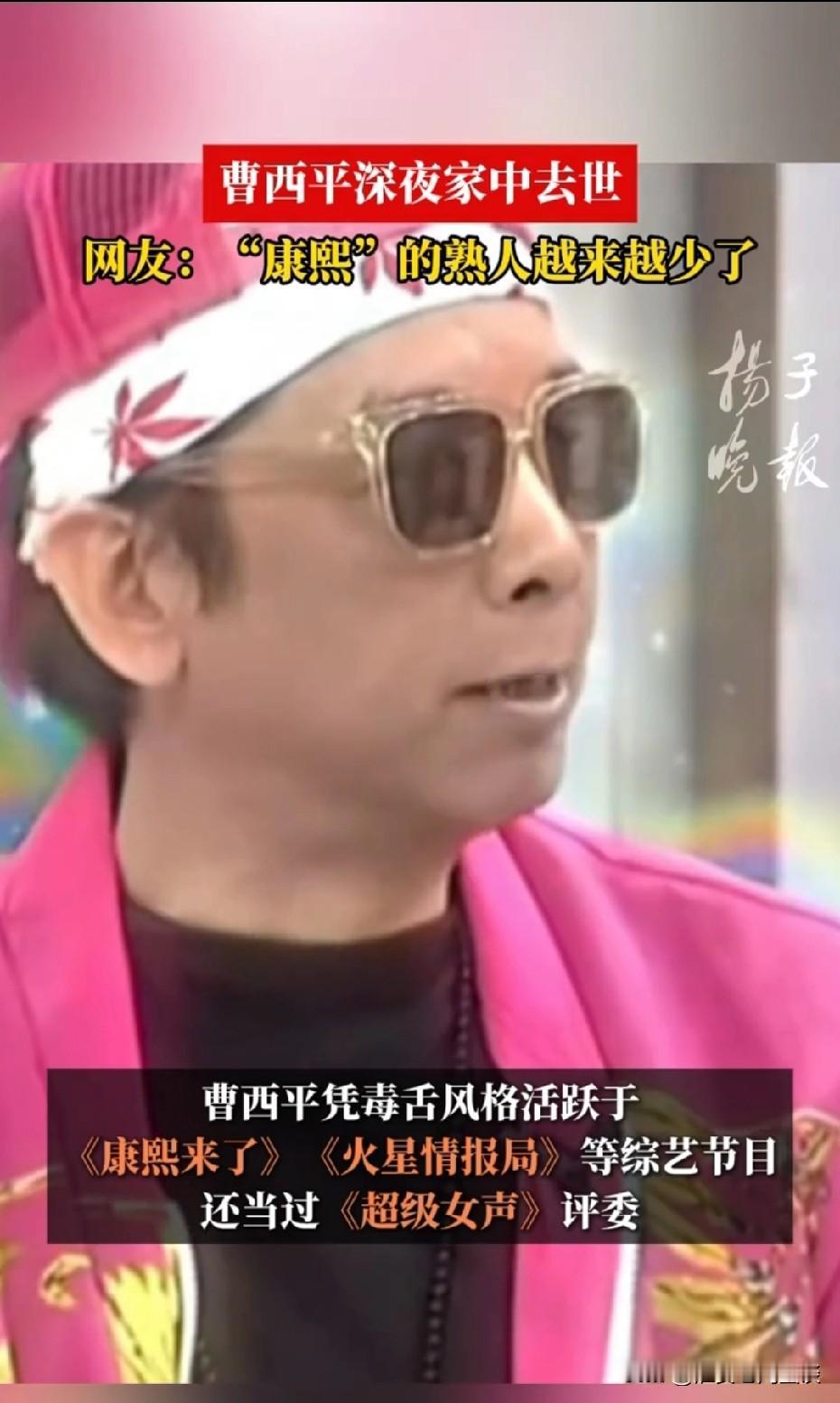 66岁艺人曹西平去世的消息太让人唏嘘!29日晚,新北市消防局到他位于三重的住处时,发现他已没了生命迹象,遗体有明显尸斑和僵硬现象,干儿子忍痛放弃急救。 他去世前两天刚经历台湾地震,那句“一切交给老天爷的安排”竟成绝响。12月初他还说12月是感恩月,觉得自己一生做得很好。 曹西平曾主持《康熙来了》,和小S合作过。他一生未娶,没子女,还和4个兄弟闹翻。他早立遗嘱,遗产留给干儿子。这么有个性的他,就这么离开了,希望他在另一个世界安好。