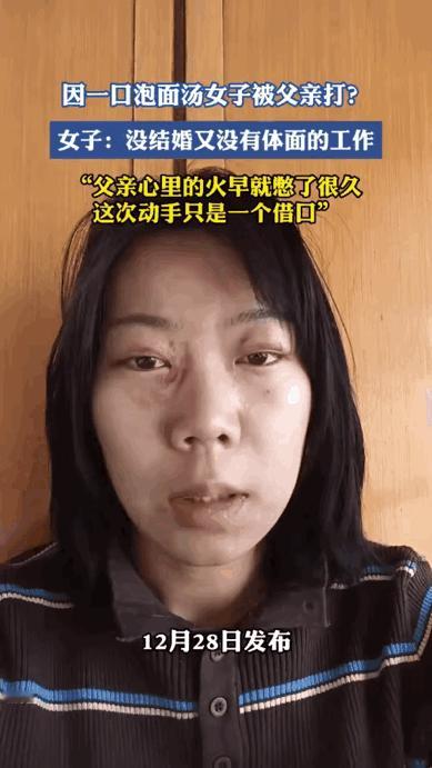 女子在网上控诉因为一口泡面汤被父亲打!原因是弟弟吃方便面,女子让弟弟给自己留一口汤,弟弟同意了可父亲却不乐意了对她大打出手! 女子把经过发到了网上,脸上有明显的伤,尤其是眼部!她说自己是不婚主义者,想做自由职业,也做过很多努力可是都没有长久的,目前也没有稳定收入! 父亲是做装修职业的小包工头,弟弟还在上学,母亲是家庭主妇! 评论区很多网友都说,不婚主义是自己的选择,但是你要有一份稳定的工作来养活自己,不婚主义并不是在家里啃老! 父亲打女儿确实不应该,或许父亲出手打人,不是因为一口方便面的事,而是恨铁不成钢,对一个没出息不争气孩子的愤怒!总有一天父母会老去,自己的路还是需要自己往下走! 成年人有权利选择自己的生活方式,但前提是能够有一份工作来养活自己,而不应该依赖别人!