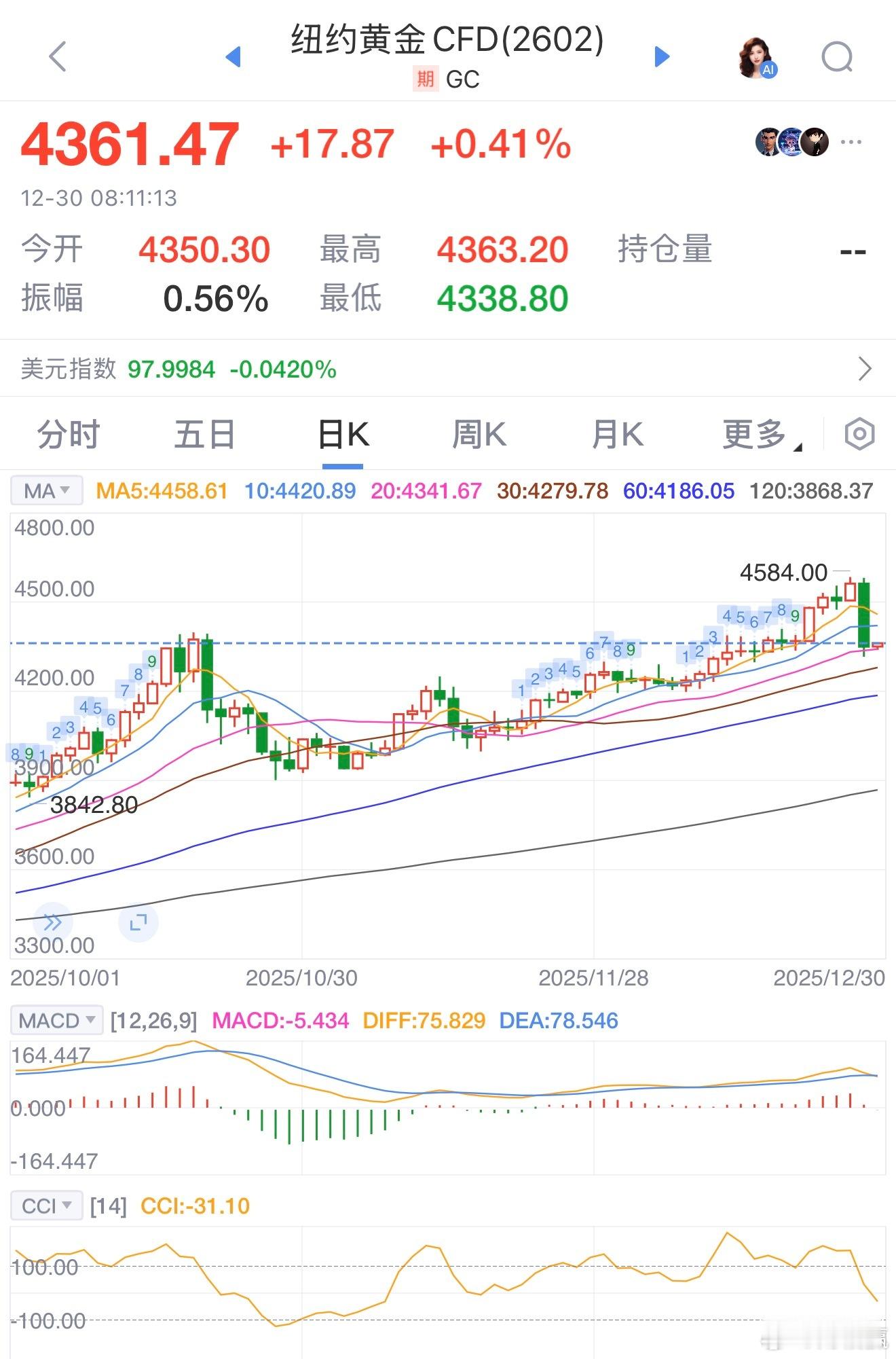 国际贵金属大幅收跌,COMEX黄金期货跌4.45%,报4350.2美元/盎司;COMEX白银期货跌7.2%,报71.64美元/盎司。现货白银大跌近9%,现货钯金跌超15%,现货铂金跌超14%。现货黄金失守4440黄金金价
